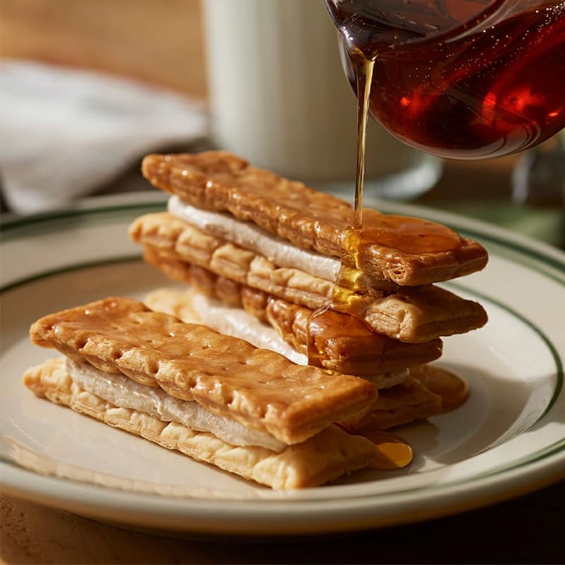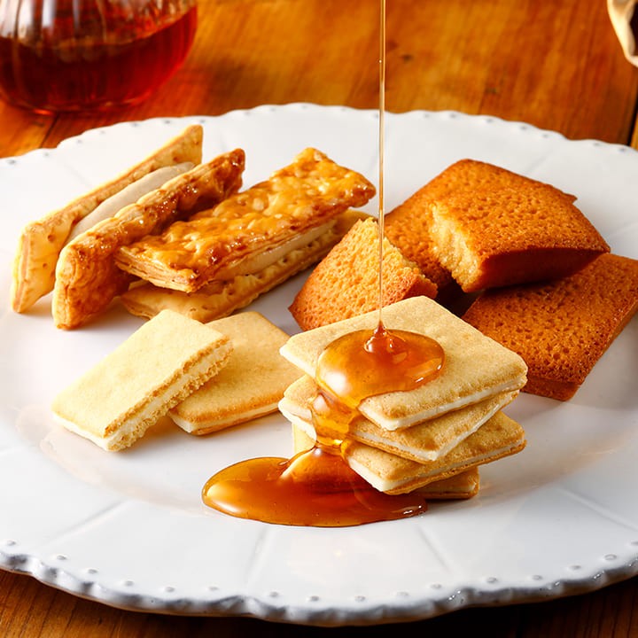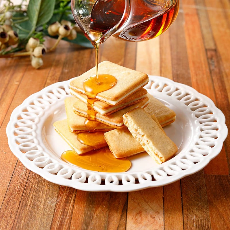在充满讲究的酥脆的馅饼面团上夹着加入枫糖的枫奶油。请享受高级甜味的枫奶油和香喷喷的馅饼面团的绝品组合。