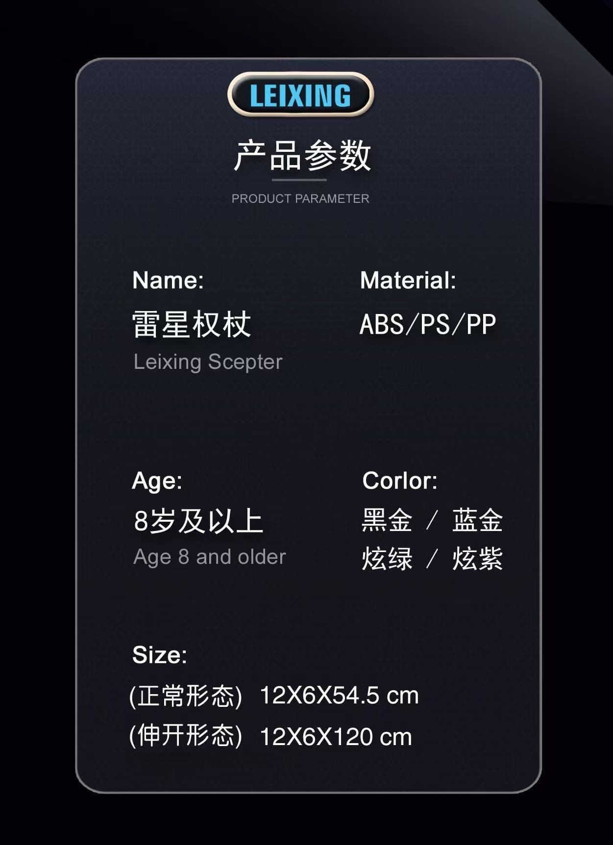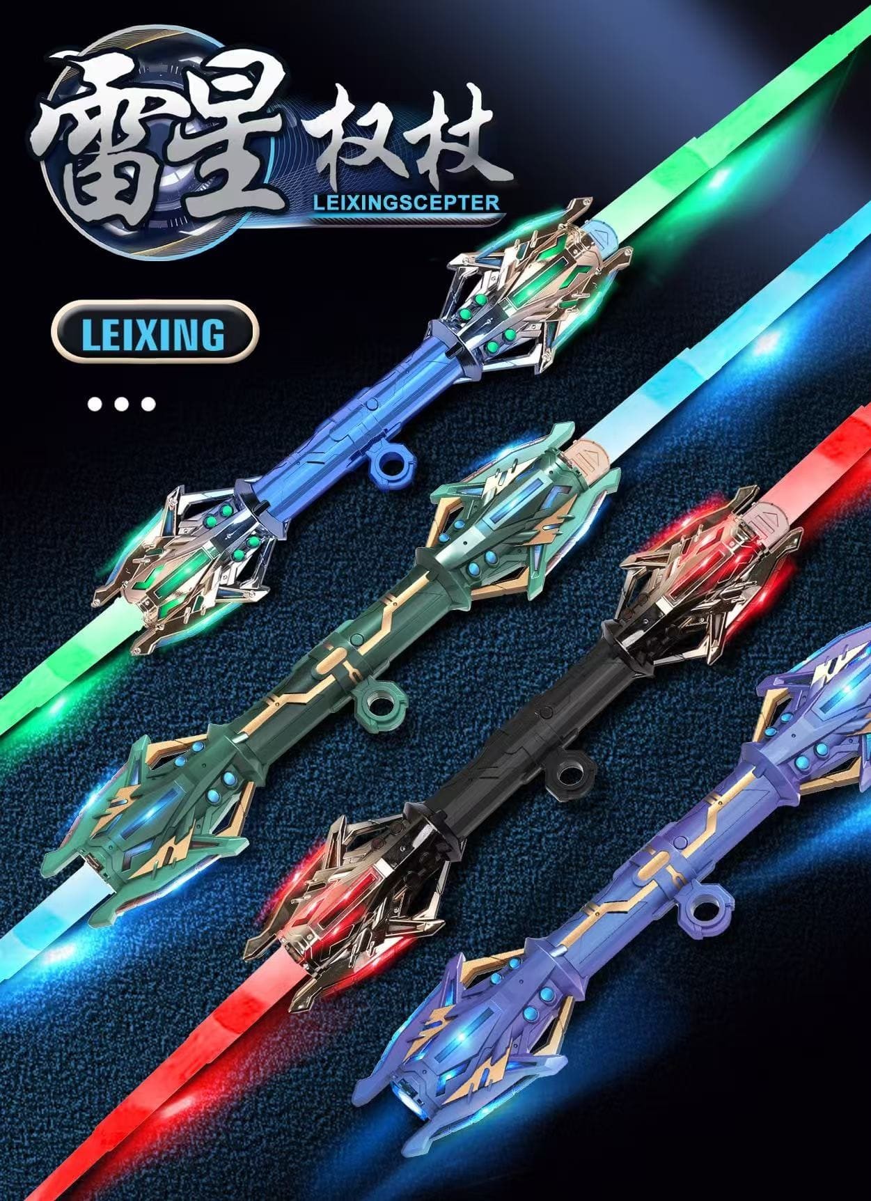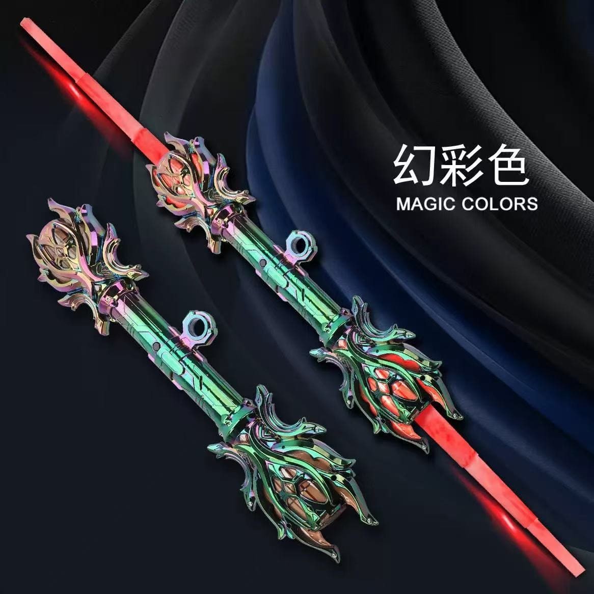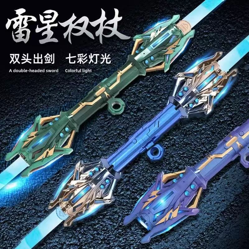 儿童雷星权杖双刃伸缩光剑多色渐变灯光旋转激光剑玩具
