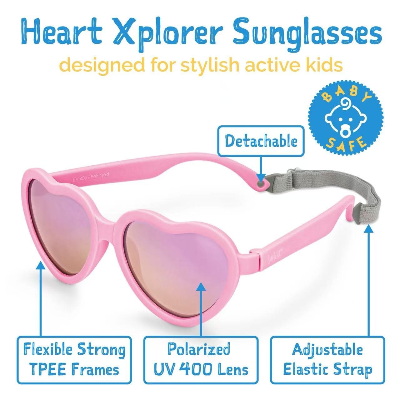 加拿大Jan & Jul儿童都市偏光心形太阳镜儿童太阳眼镜(粉色)