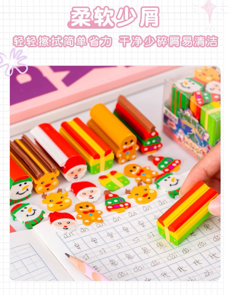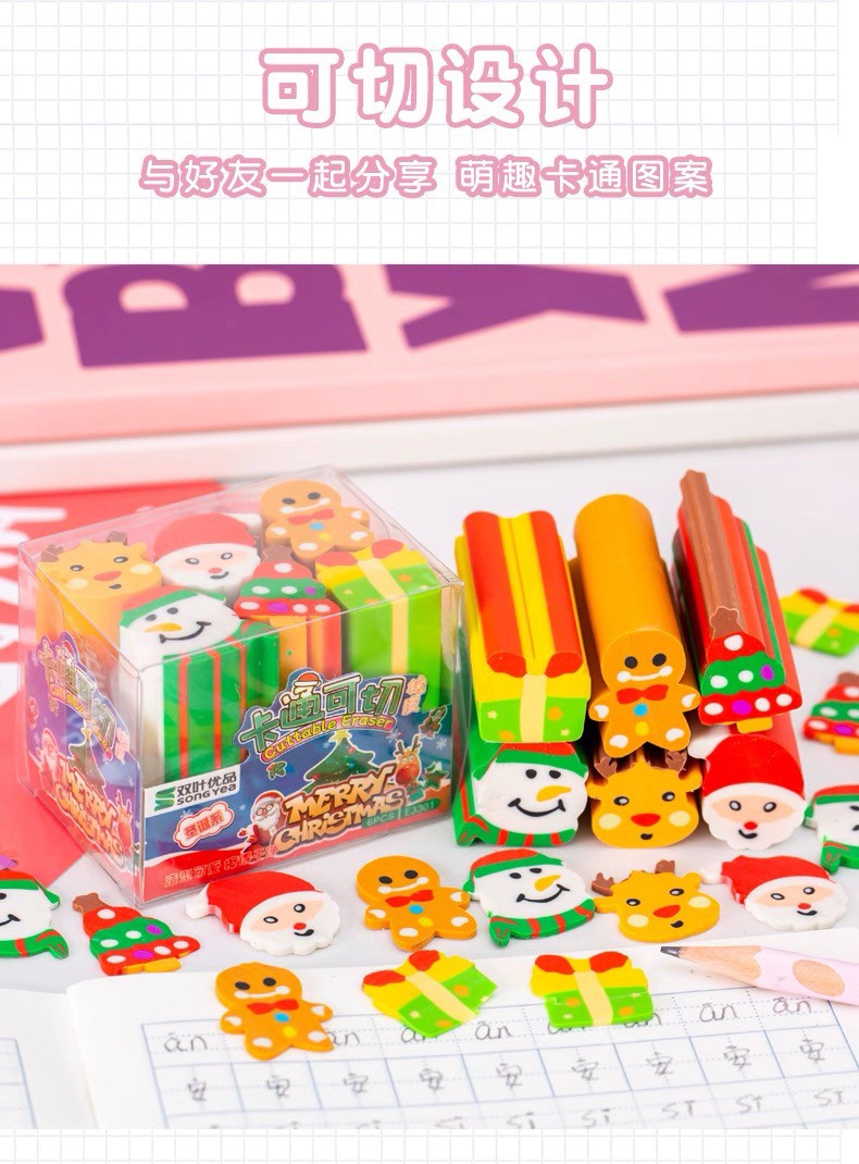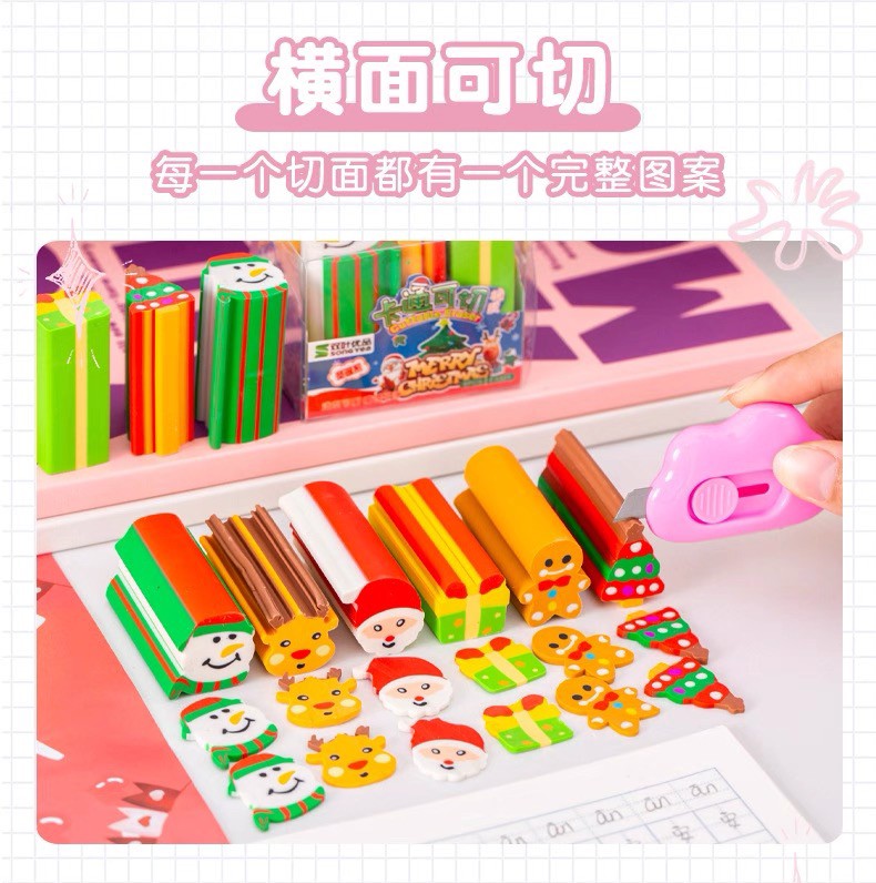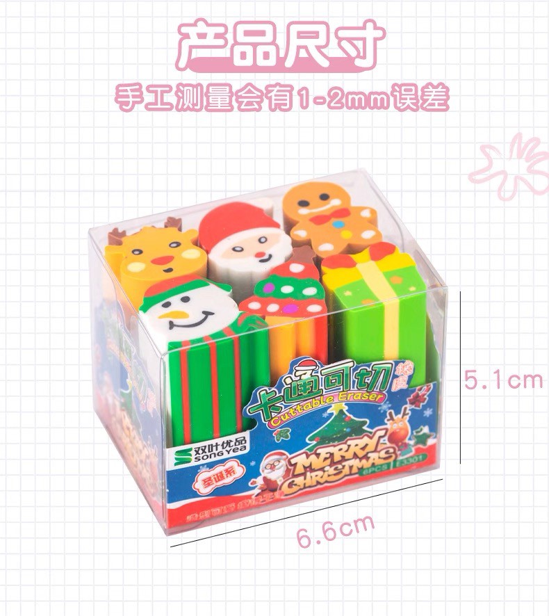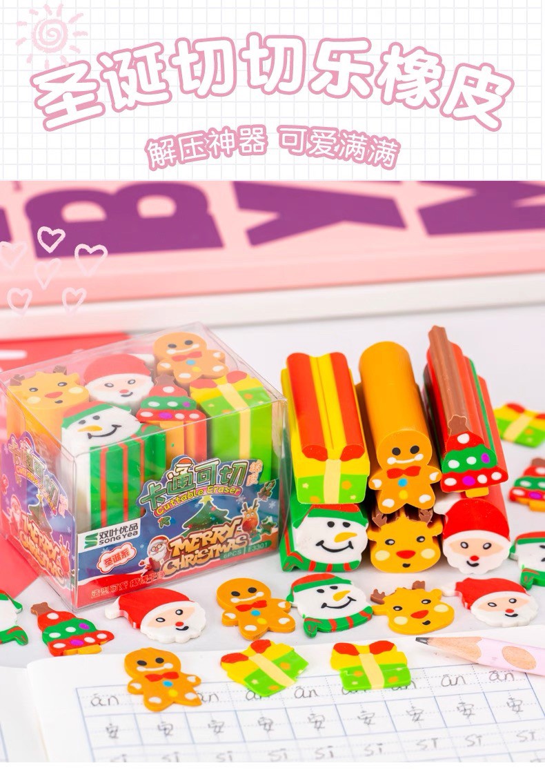 圣诞创意切切乐卡通橡皮套装(一盒6个)