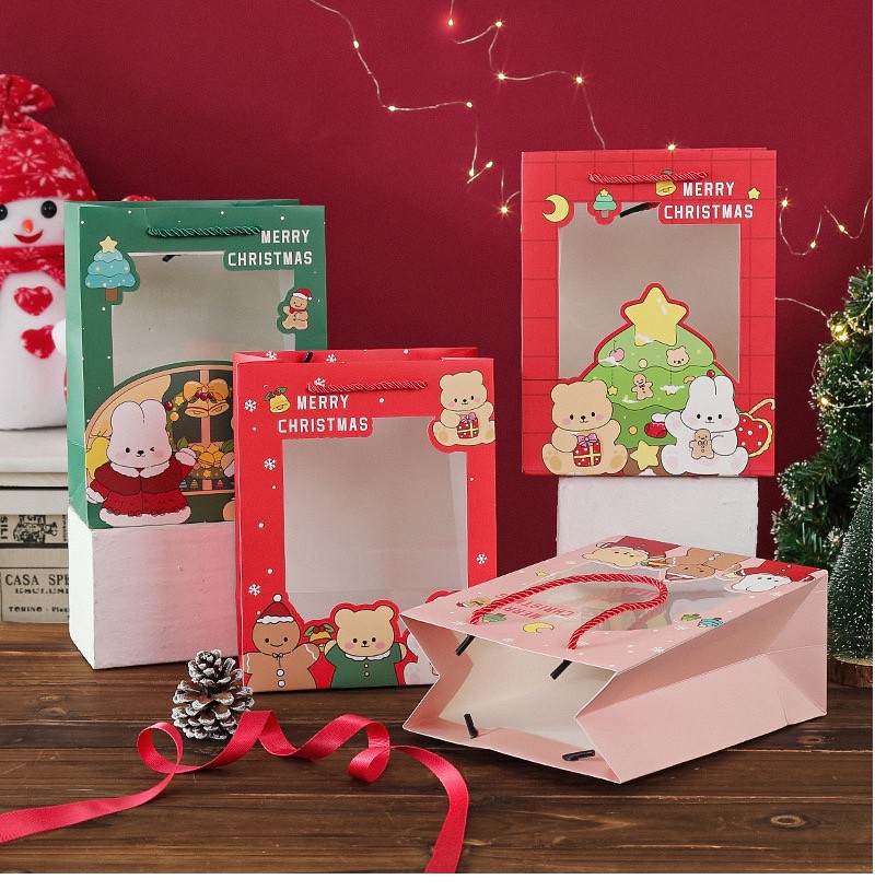 圣诞开窗礼品袋卡通透明手提袋(5个装)