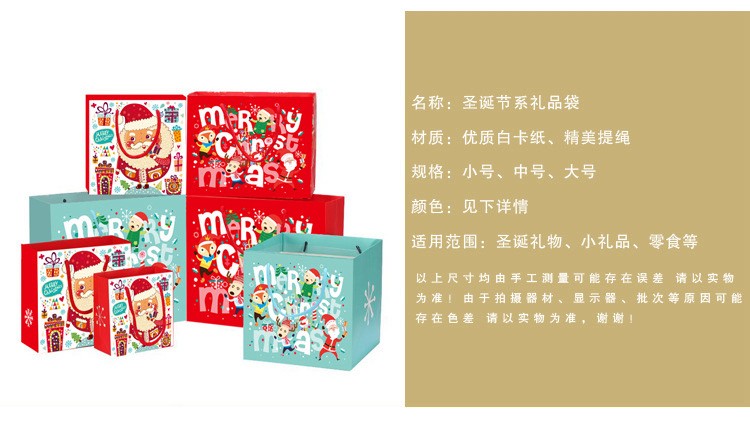 圣诞节圣诞老人手提袋礼品袋蓝色(5个装)