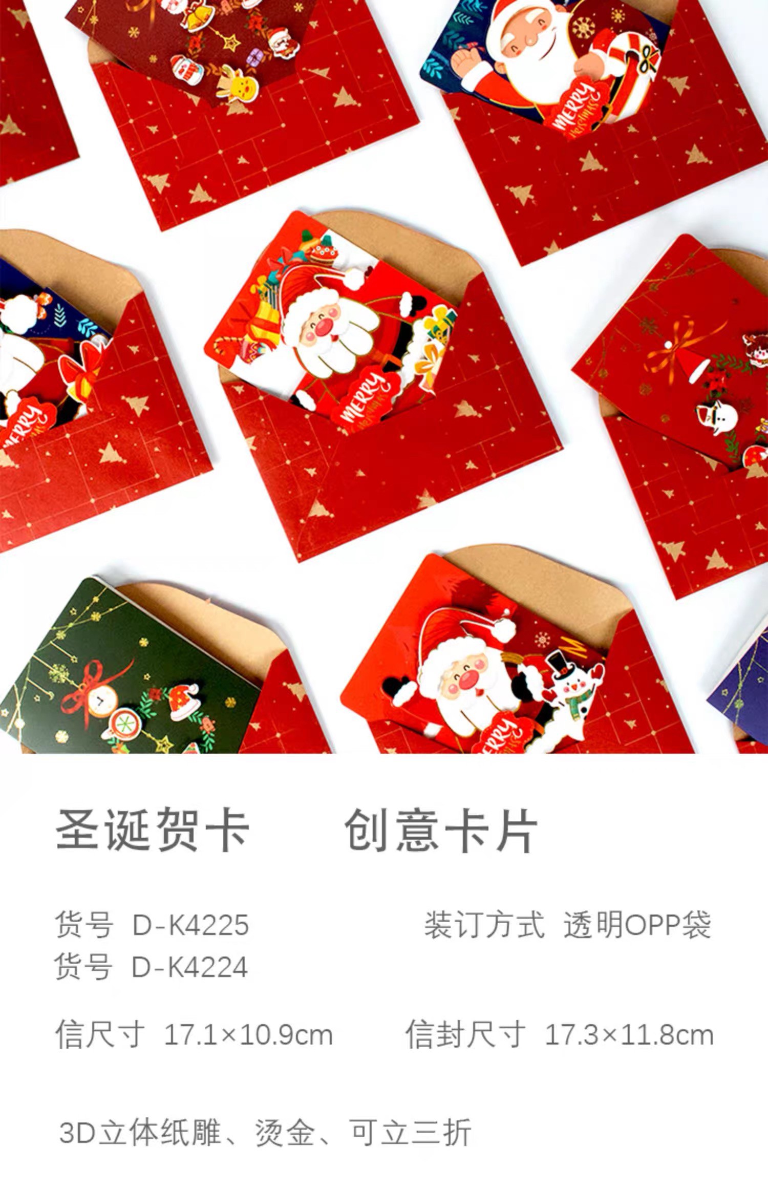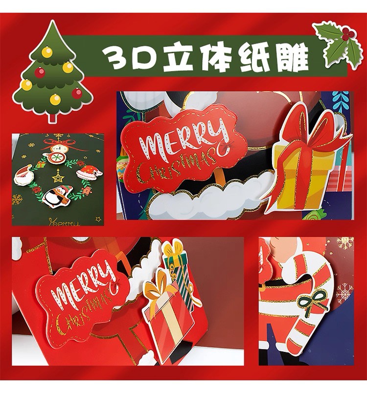 圣诞贺卡3D立体纸雕烫金创意卡片