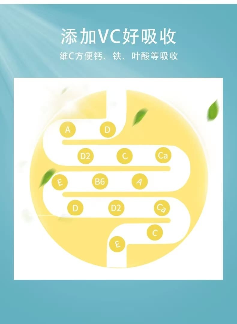- 复合维生素,营养好味道,帮助成长,让宝宝更高更壮,维生素A、D、C软糖柠檬口味,酸甜滋味的维生素补充剂。