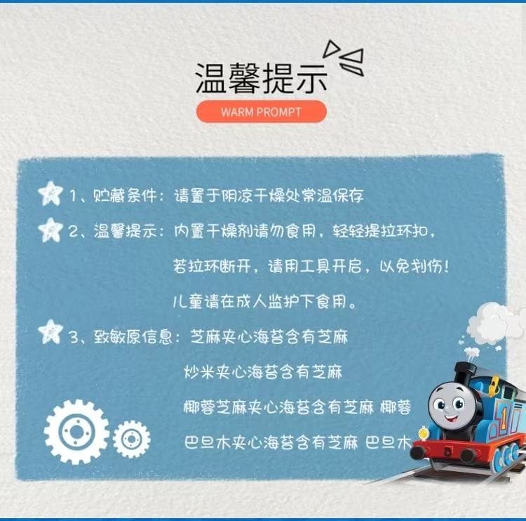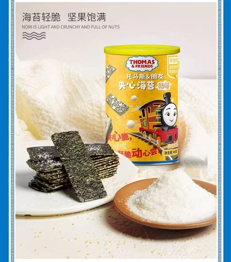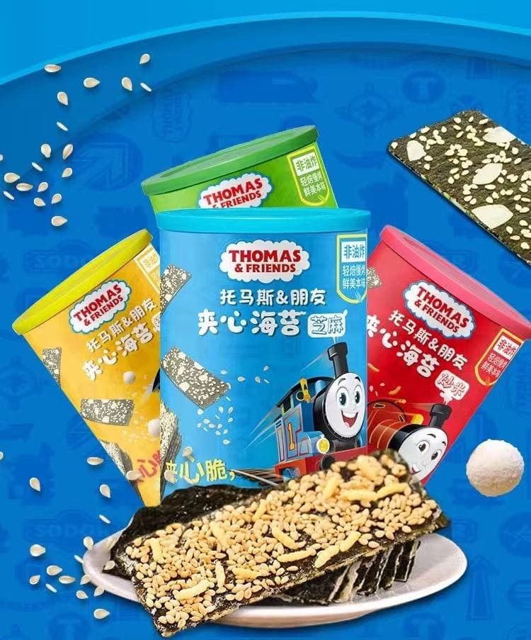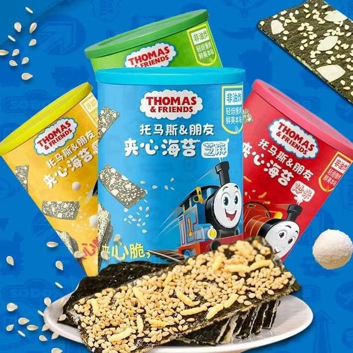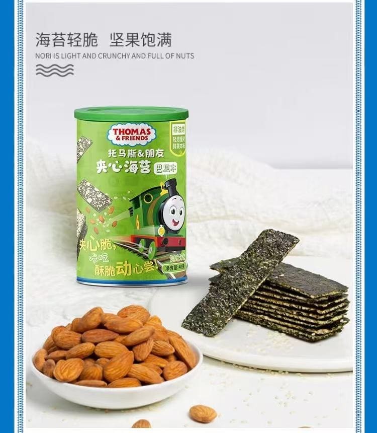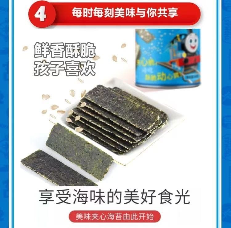 托马斯和朋友小火车Thomas & Friends夹心海苔片罐装儿童慢烤酥鲜香脆夹心海苔即食零食