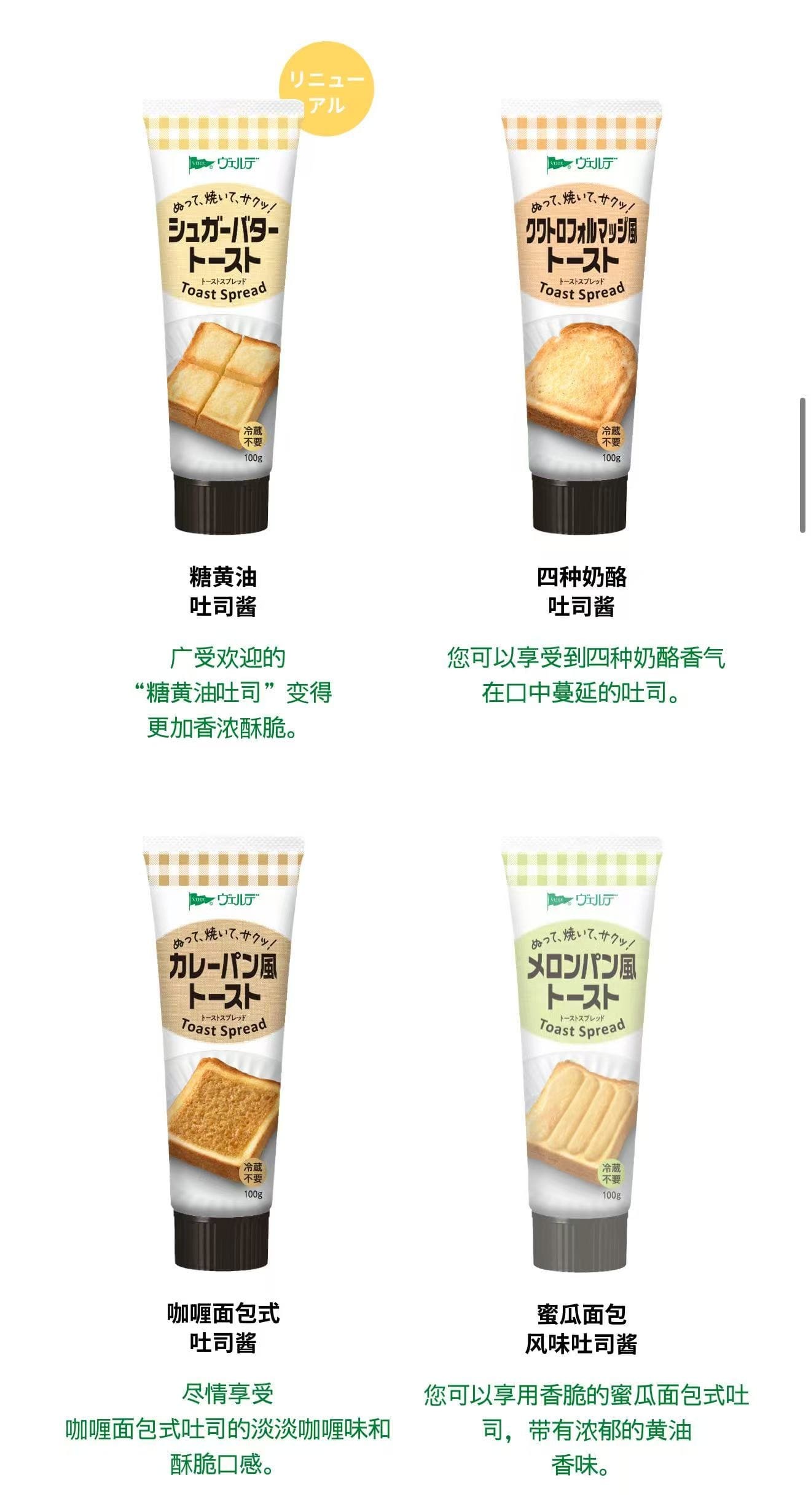 这是一系列涂抹酱,只需涂抹在面包上并烘烤即可轻松享用各种吐司。