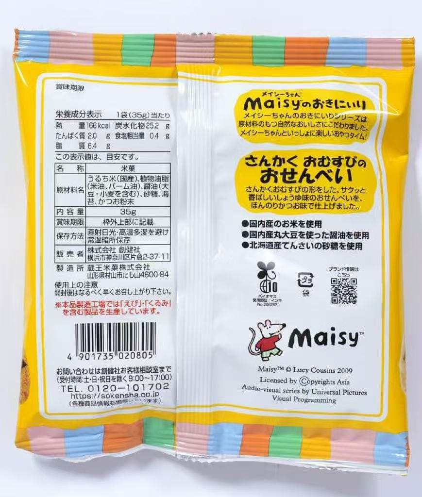○ 三角形饭团形状,香脆可口的酱油味米果,带有淡淡的鲣鱼香味。