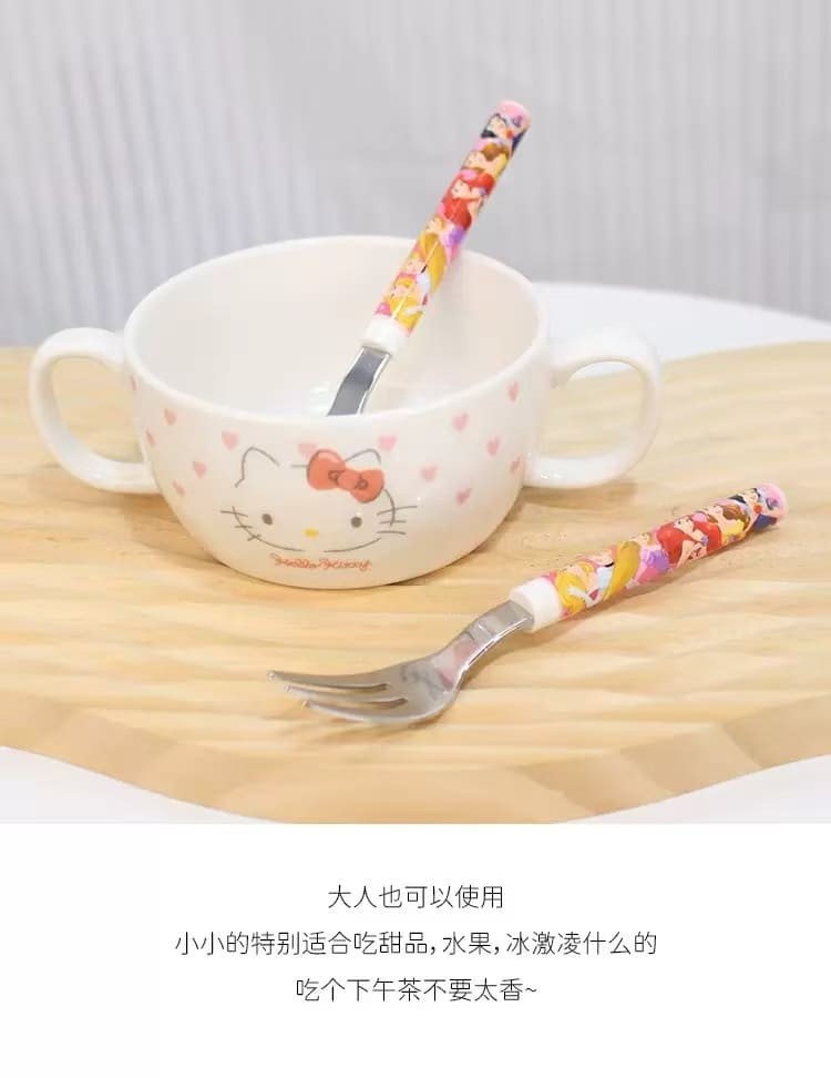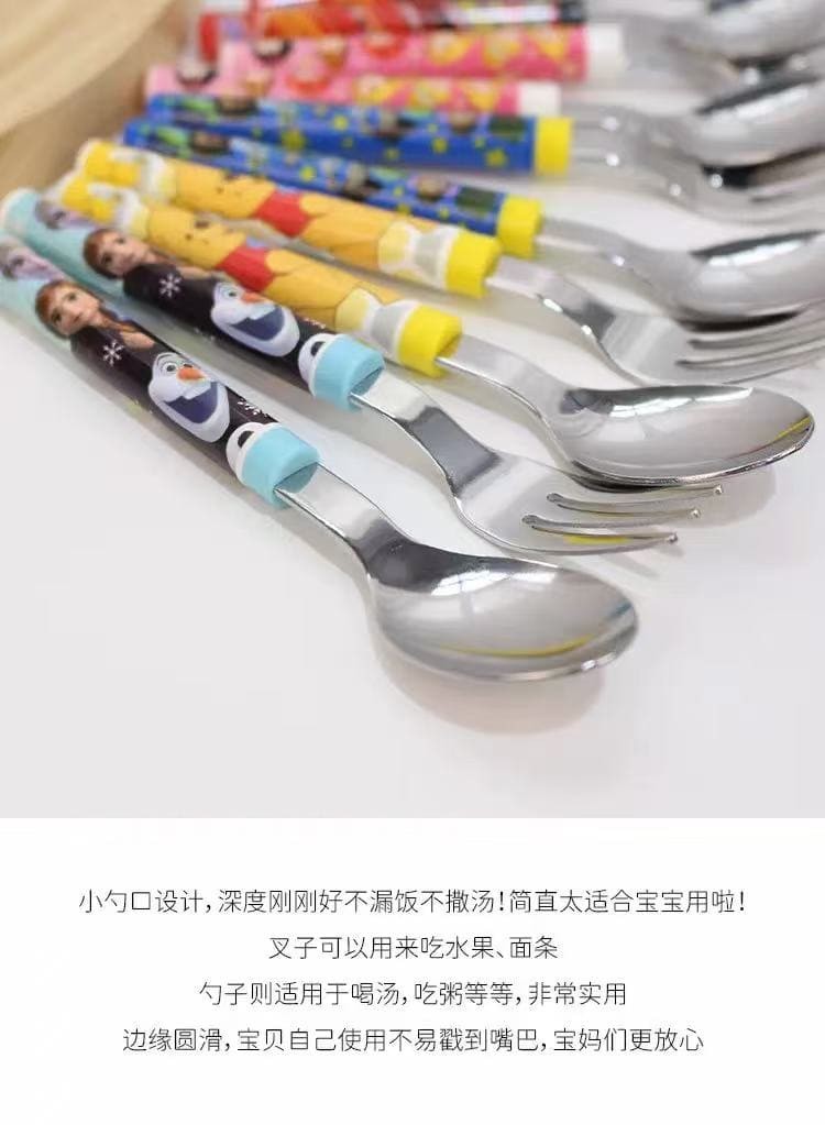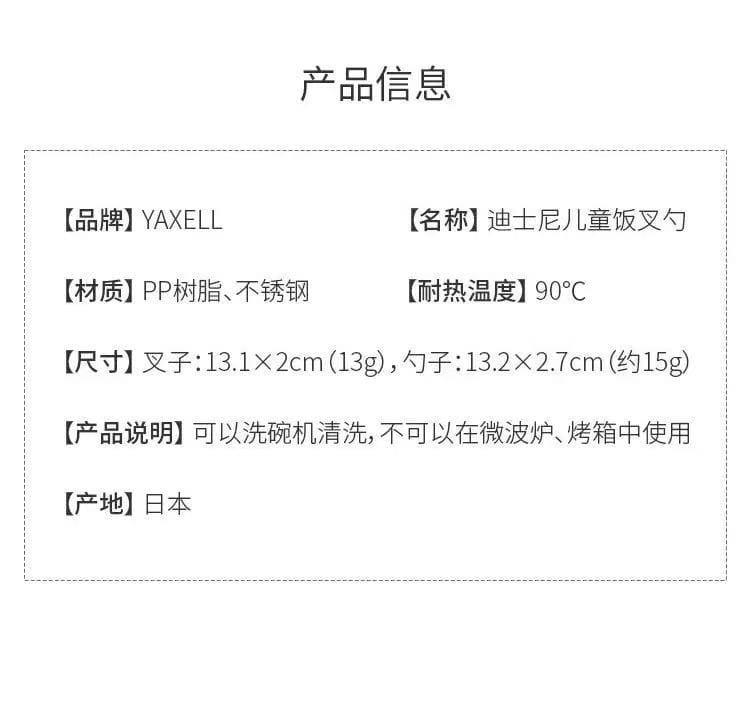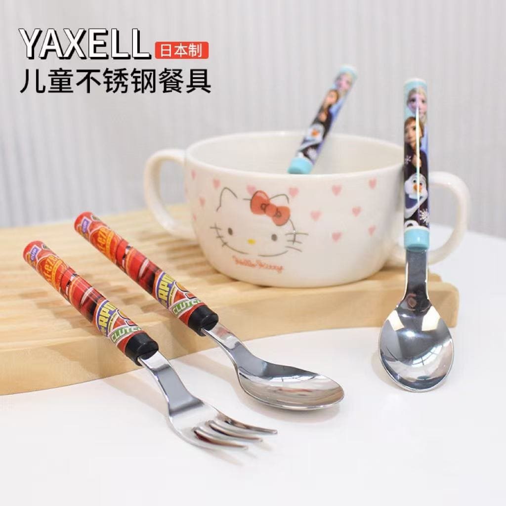 日本制YAXELL迪士尼卡通小学生儿童树脂不锈钢勺叉餐具