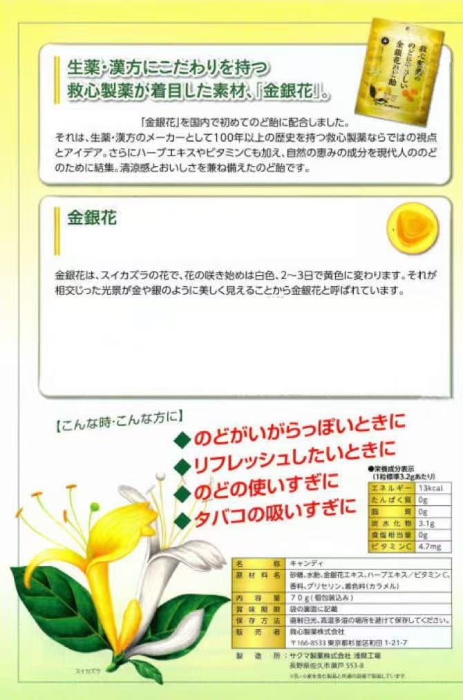 救心制药润喉金银花润喉糖,蕴含金银花(一种以舒缓咽喉功效著称的草药)以及西洋草药提取物和维生素C。这款美味的润喉糖能够舒缓咽喉,带来清爽体验。无论是喉咙发痒、用药过度、想清爽一下,还是吸烟过量,这款润喉糖都能完美满足您的需求!