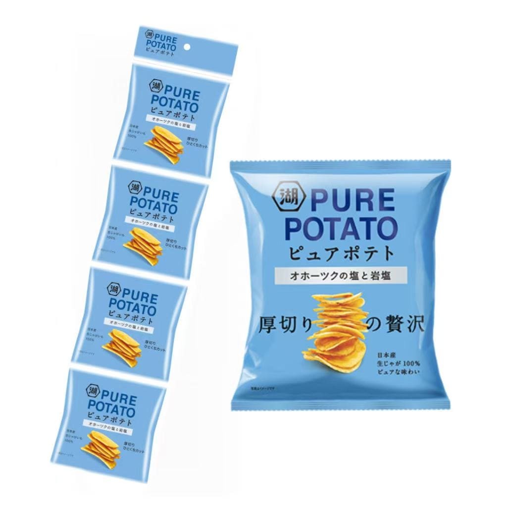 日本湖池屋鄂霍次克盐和岩盐双重淡盐味厚切薯片四连包