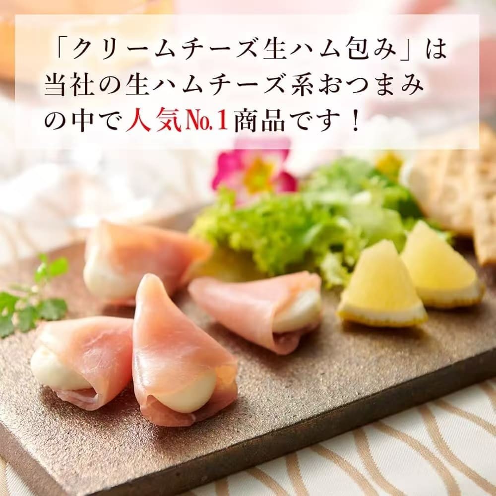 这款由精心熟成的猪里脊肉制成的柔嫩醇厚的意大利熏火腿,包裹着北海道奶油奶酪。一口一个,口感软嫩,是佐酒的完美之选!