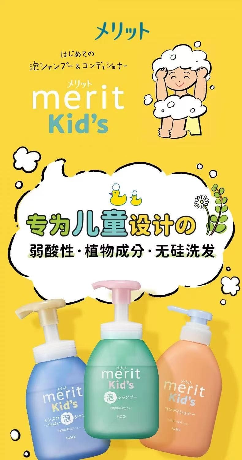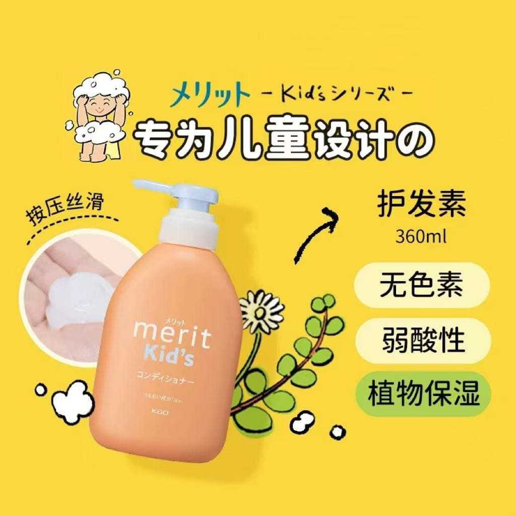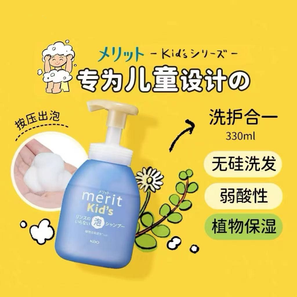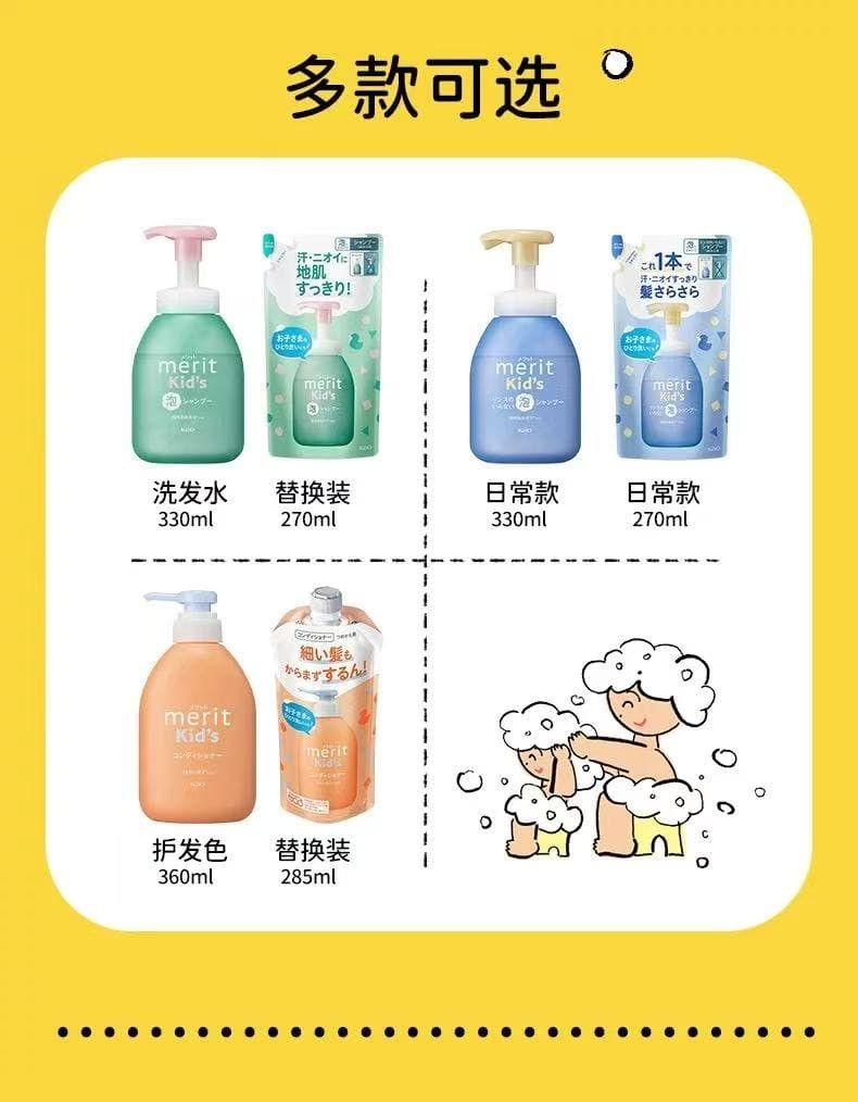 日本KAO花王Merit儿童专用洗发水&护发素&洗护二合一(330ml)