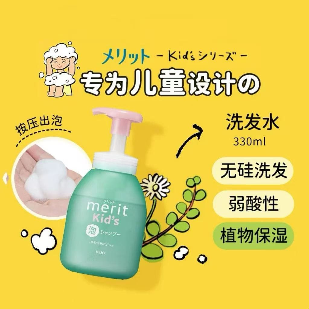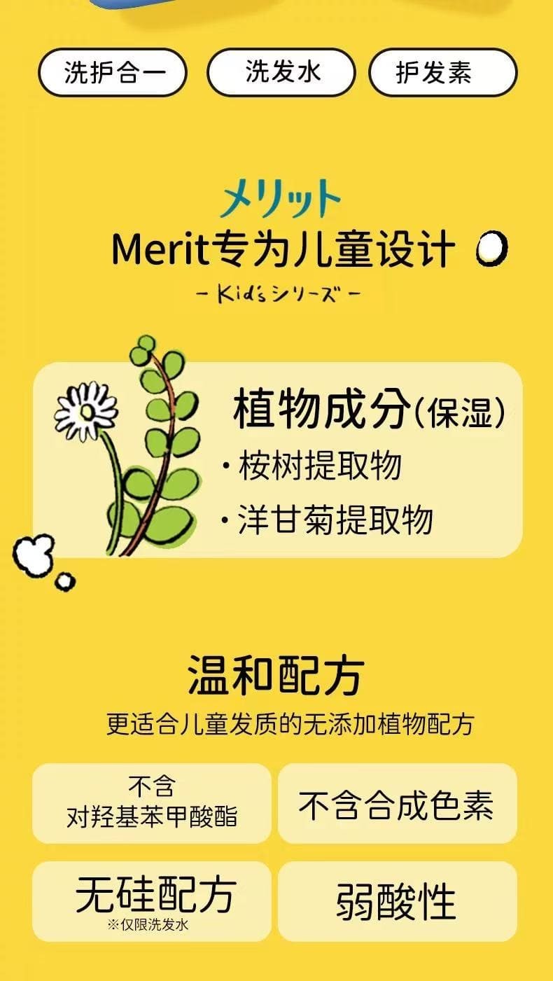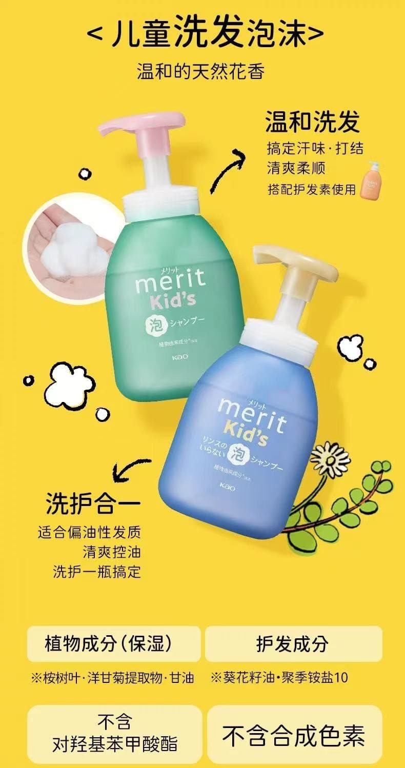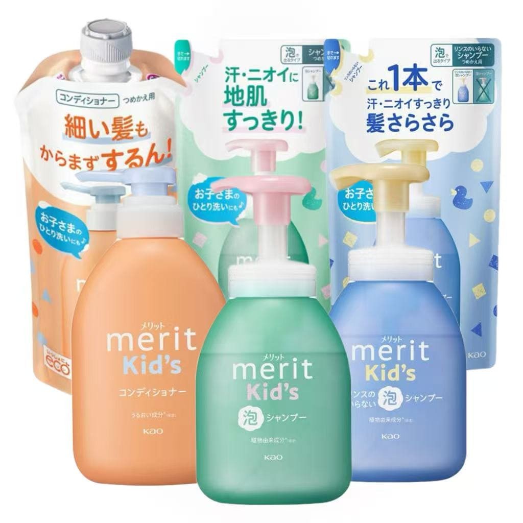 日本KAO花王Merit儿童专用洗发水&护发素&洗护二合一(330ml)