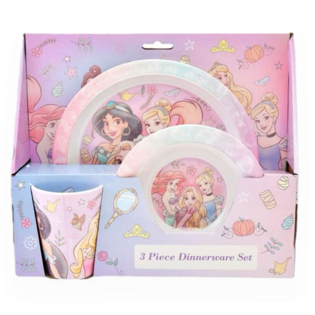 印有六位迪士尼公主人物和可爱图案的设计。盘子和碗都装饰有闪光,边缘还画有帕斯卡和波茨夫人等人物。餐具的另一个优点是不易破损、重量轻且易于清洁。