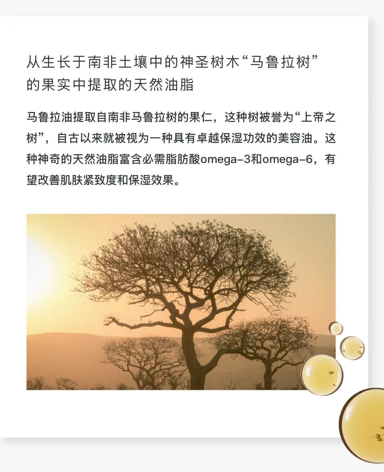 产品成分:葵花籽油、C15-19烷烃、刺槐籽油、澳洲坚果籽油、白芒花籽油、米胚芽油、榛子籽油、乳木果油、鳄梨油、霍霍巴籽油、山茶籽油、葡萄籽油、月见草油、犬蔷薇果油、犬蔷薇果提取物、甜杏仁油、玉米油、荜澄茄果油、香脂树皮油、依兰花油、樟树枝/茎油、丁香叶油、天竺葵油、乳香油、广藿香油、佛手柑果油、马郁兰叶油、柑橘皮油、迷迭香叶油