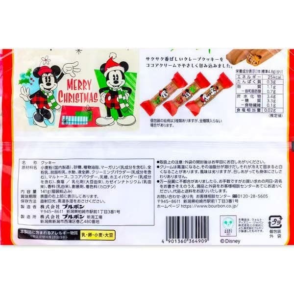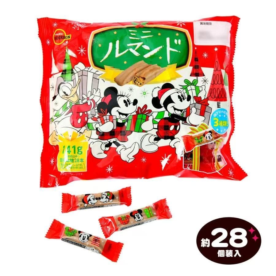 现货日本BOURBON布尔本圣诞节限定酥脆巧克力可丽饼迷你饼干卷