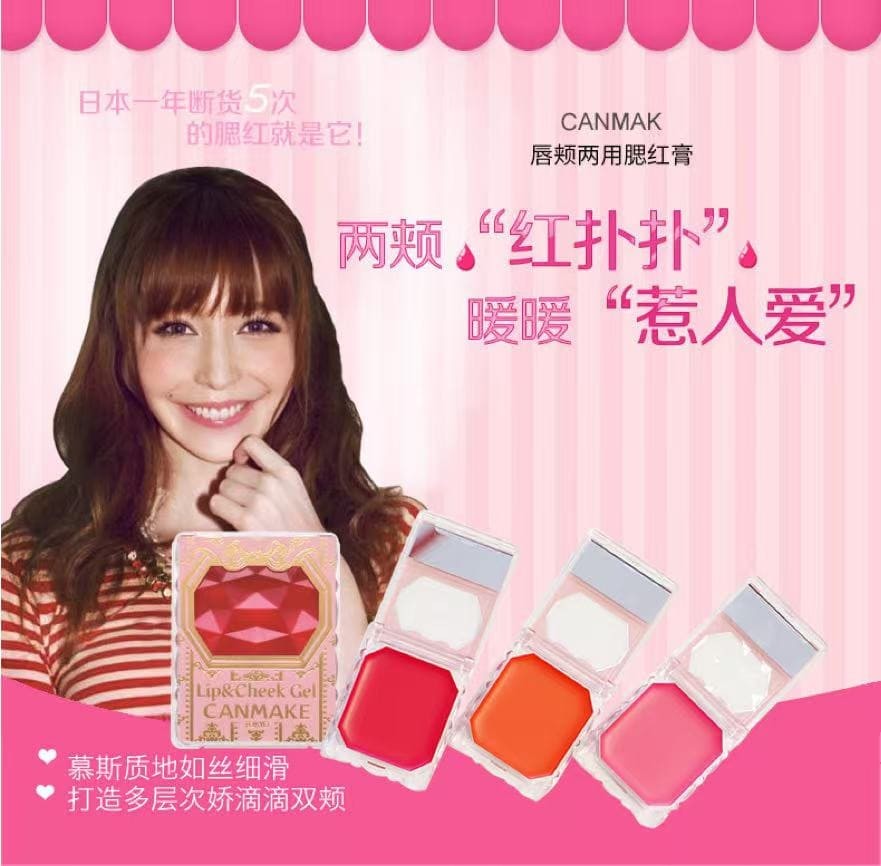 日本CANMAKE井田水润霜状腮红胭脂膏唇颊两用啫喱腮红胭脂膏