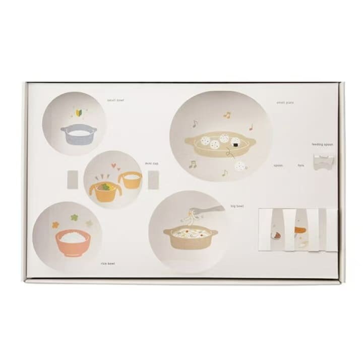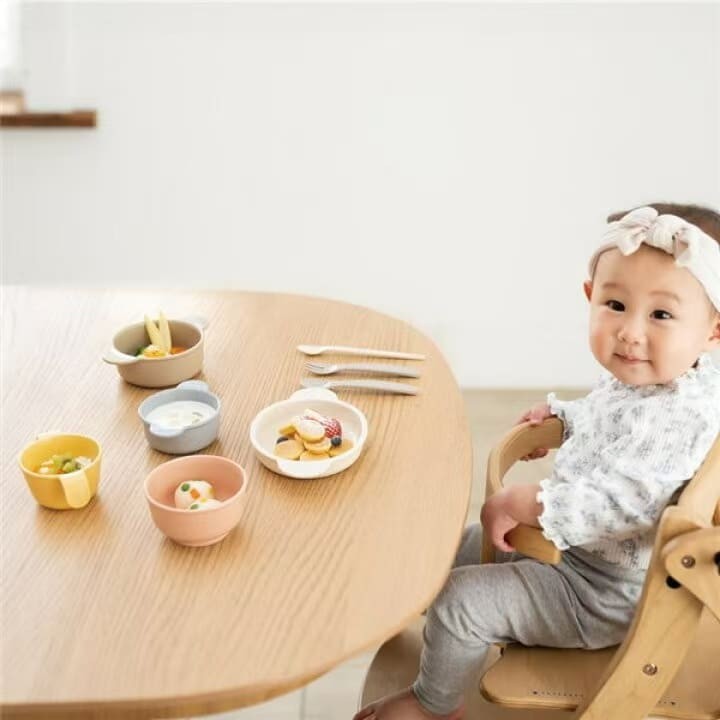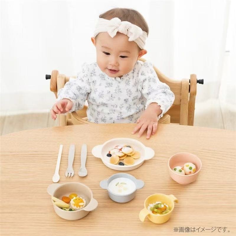 它不会占用您橱柜太多空间!这套日本制造的餐具套装功能齐全,可伴随宝宝成长多年,从断奶初期即可使用!