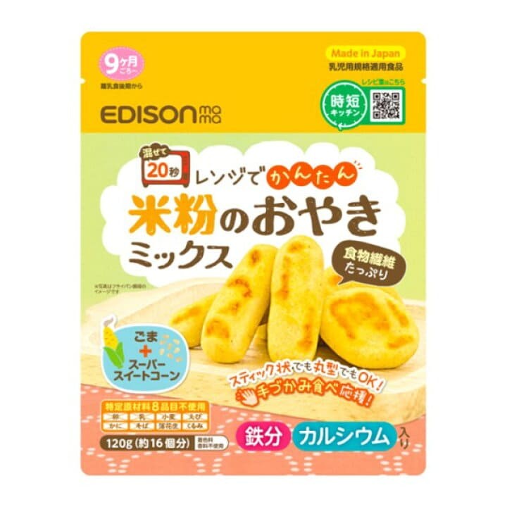 日本Edison Mama 甜玉米芝麻钙铁混合米粉快捷蛋糕粉(9个月+)