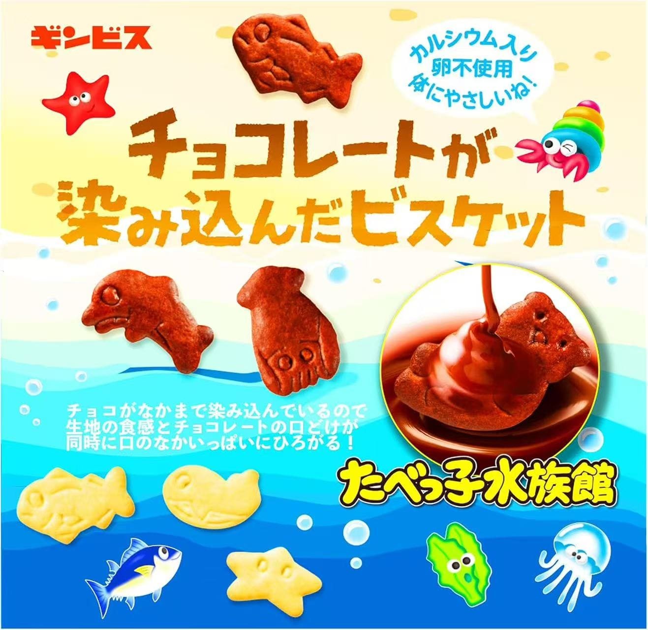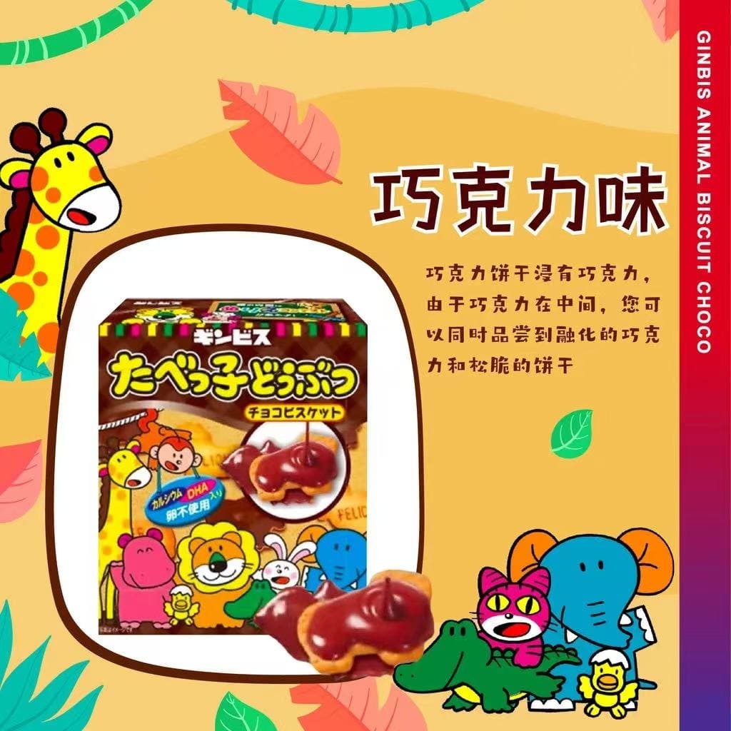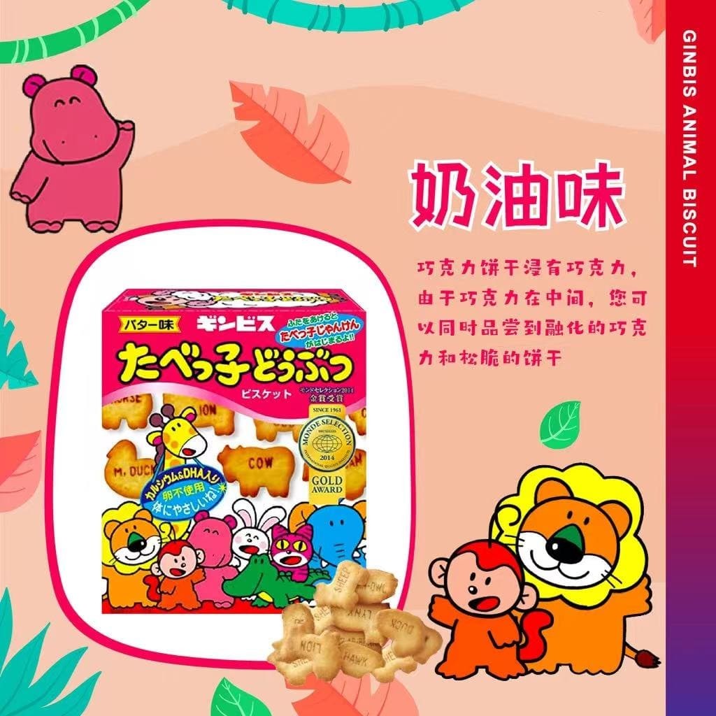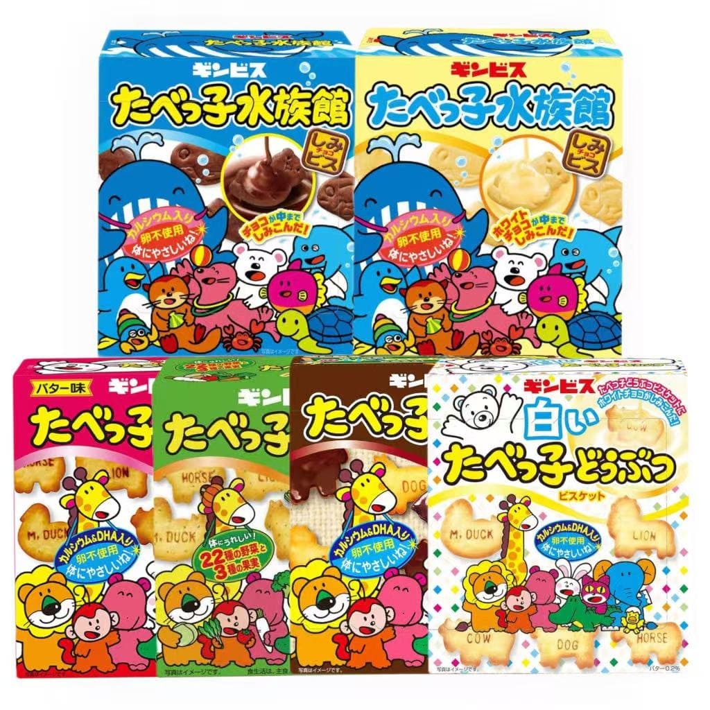 特价日本Ginbis金必氏儿童盒装动物小饼干水族馆系列注心儿童零食饼干