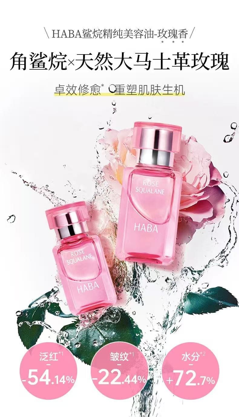 日本HABA SQUALANE玫瑰角鲨浣油滋养护肤补水保湿舒缓美容油皮肤精华油