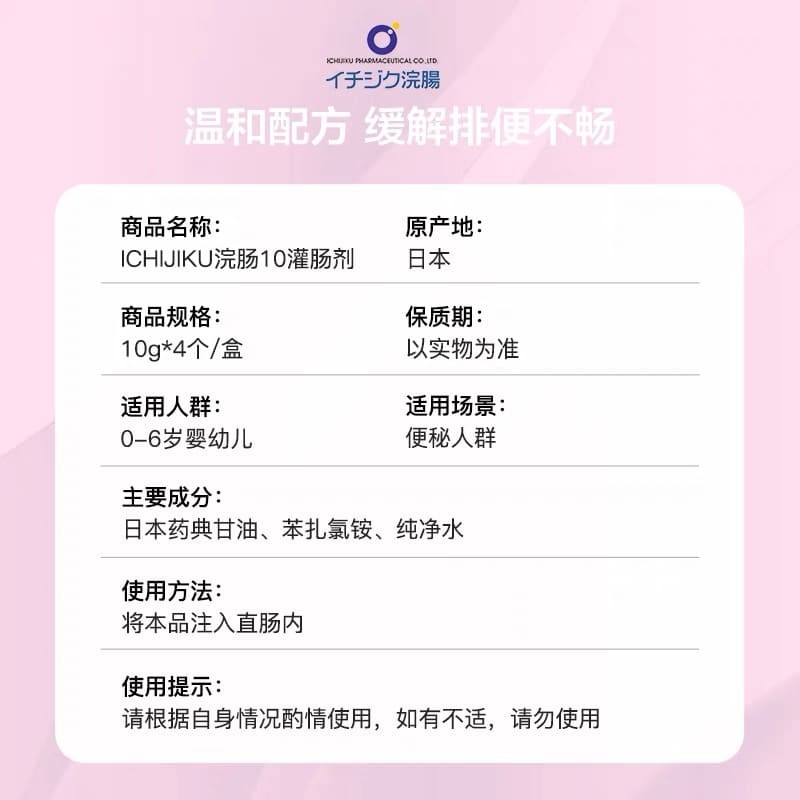 日本ICHIJIKU制药浣肠10灌肠剂儿童开塞露