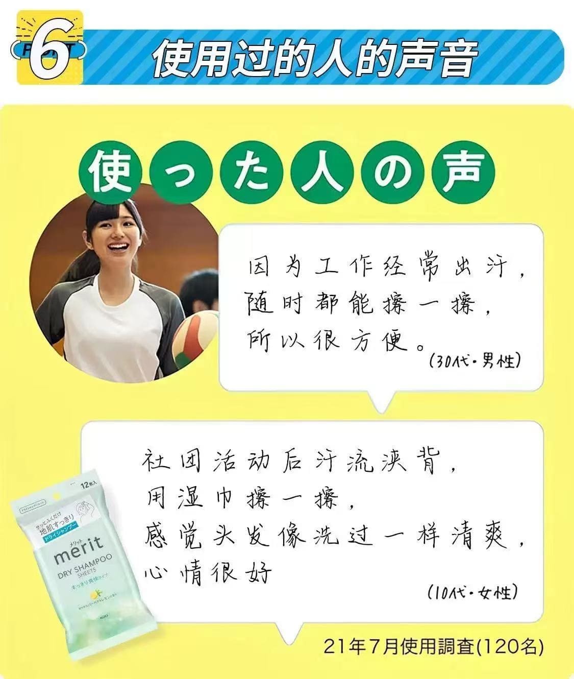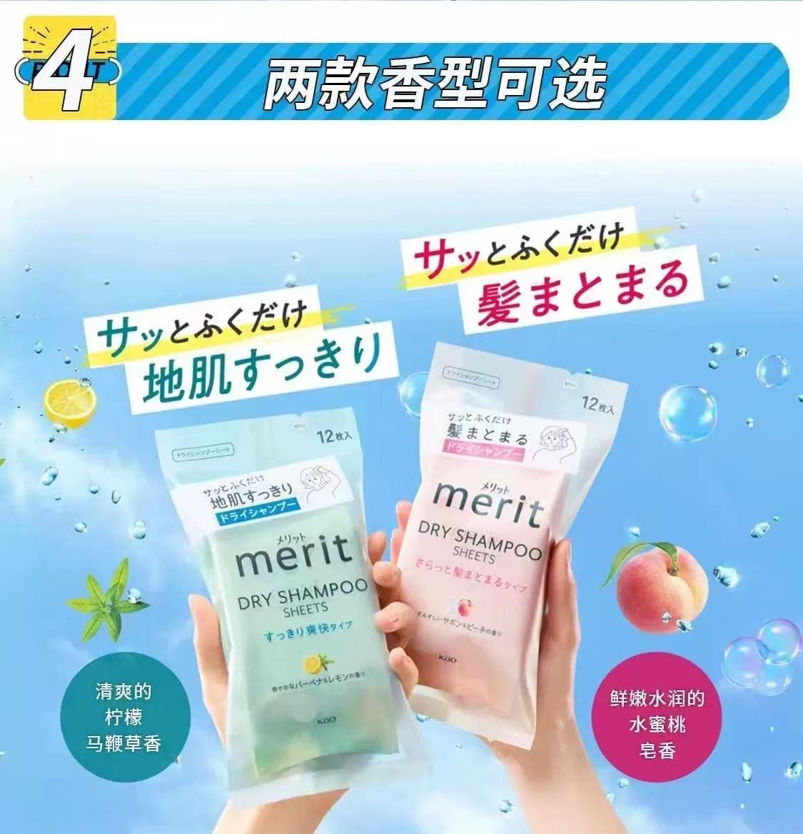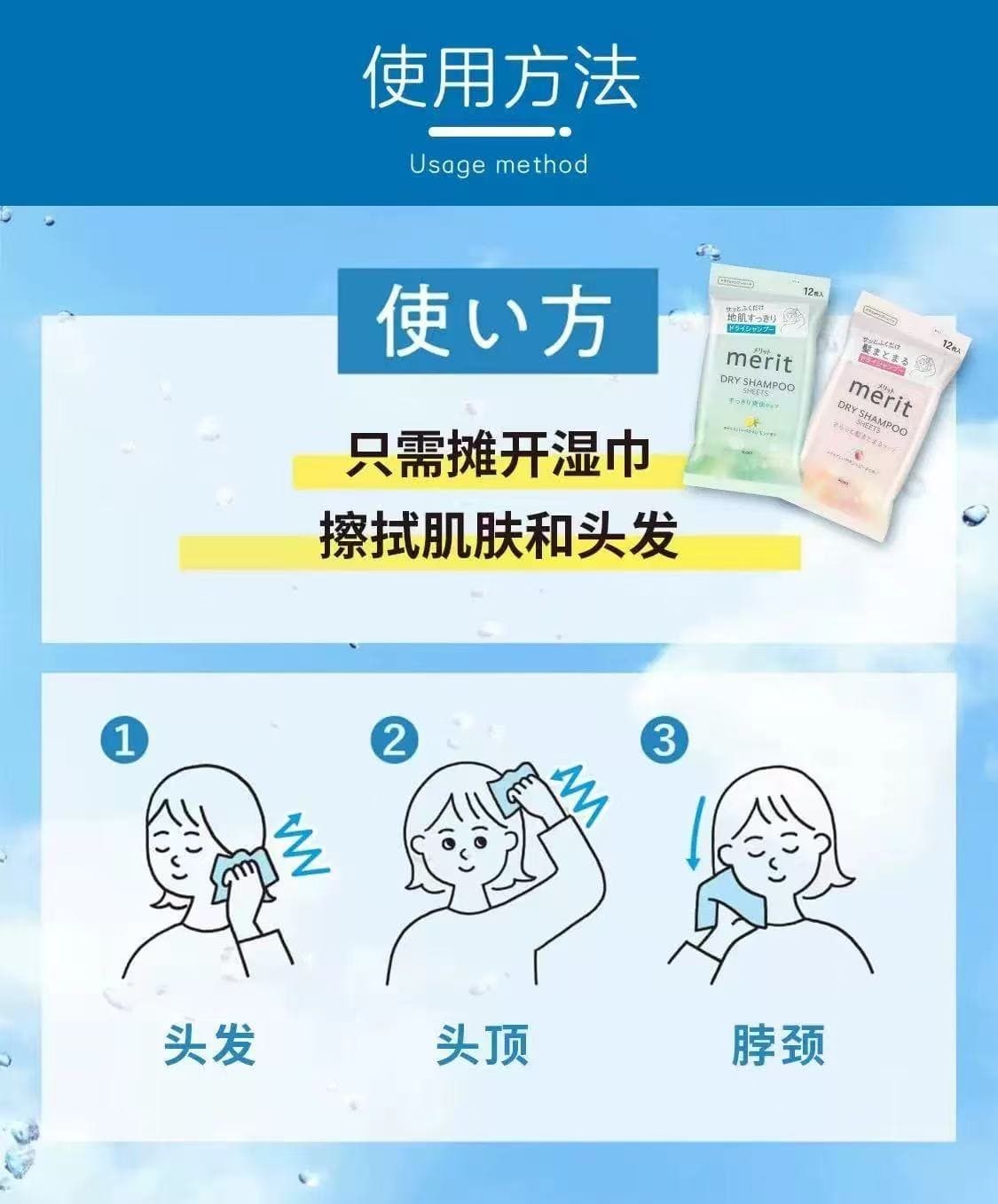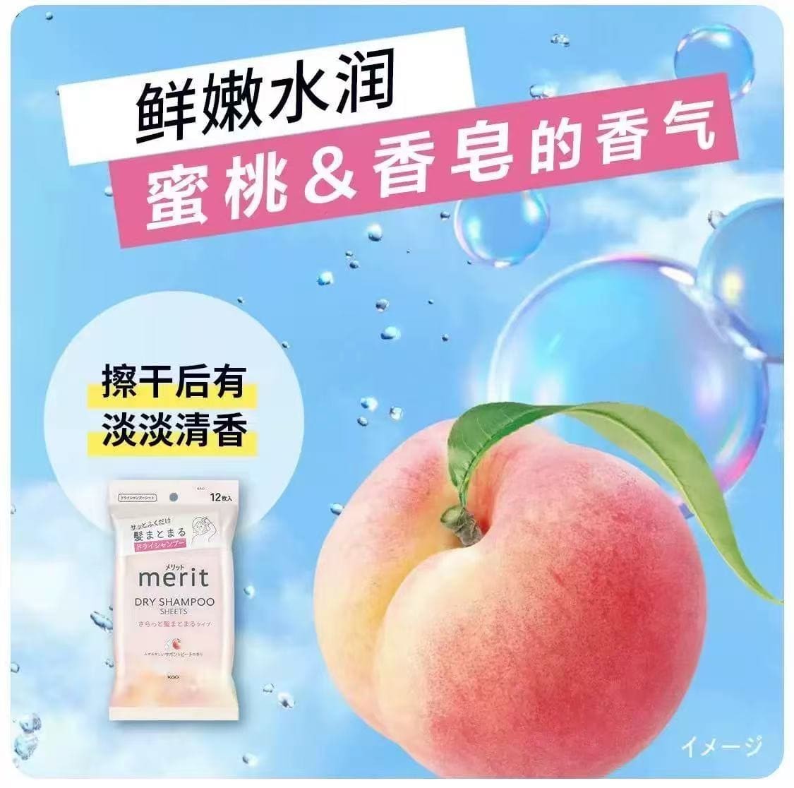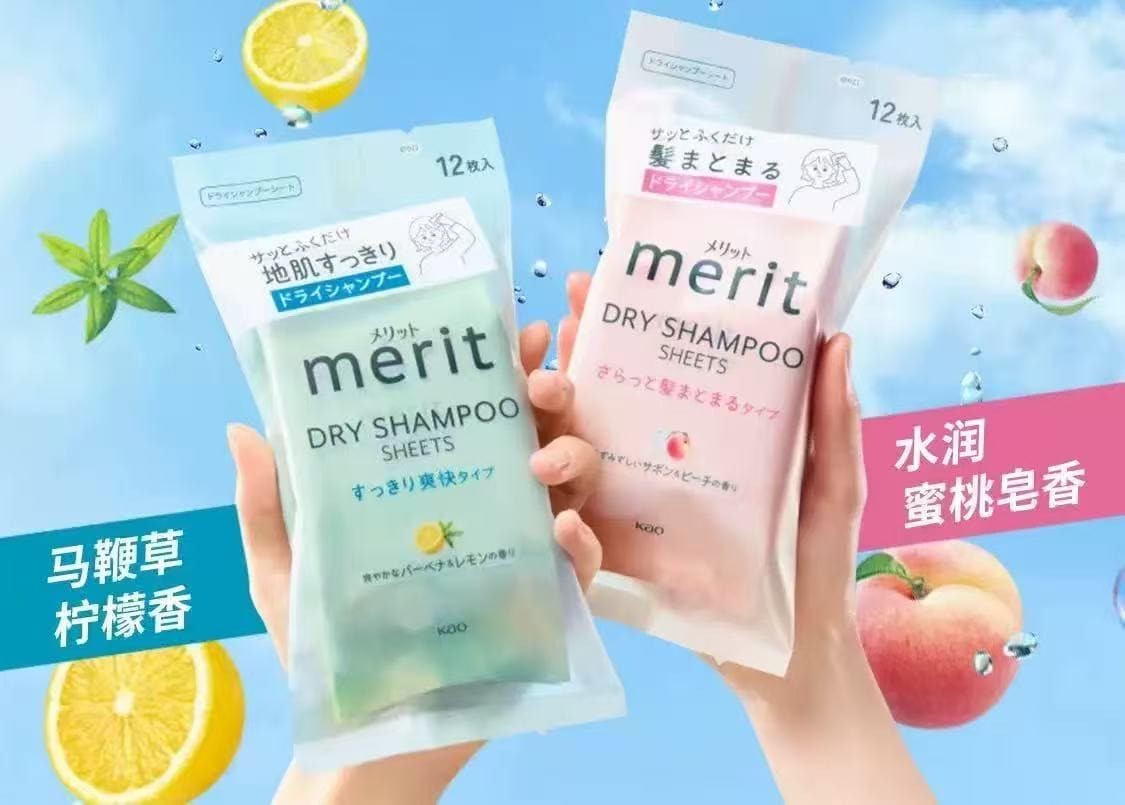 日本KAO花王Merit头发干洗清洁湿巾去污去汗祛异味蓬松清爽清洁湿巾头发免洗清洁神器