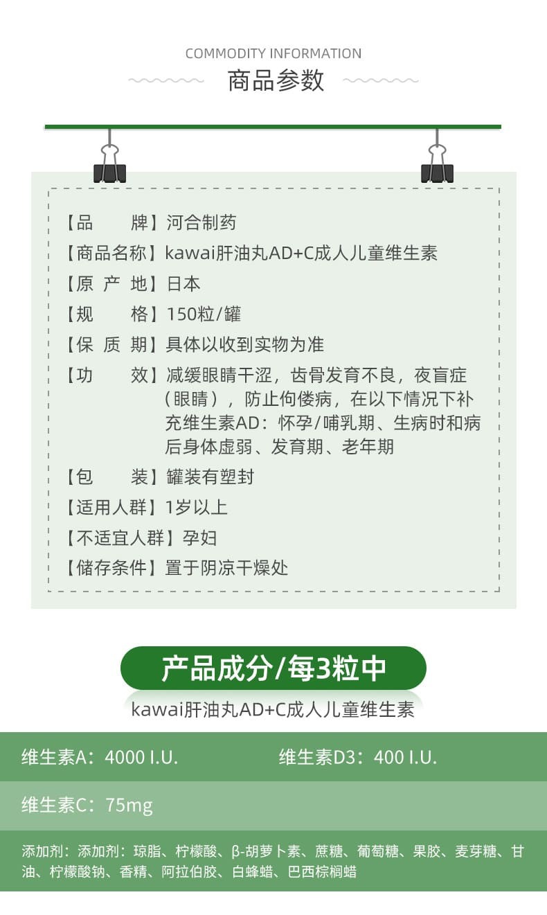 特价日本KAWAI河合制药儿童肝油丸维生素AD+C补充剂