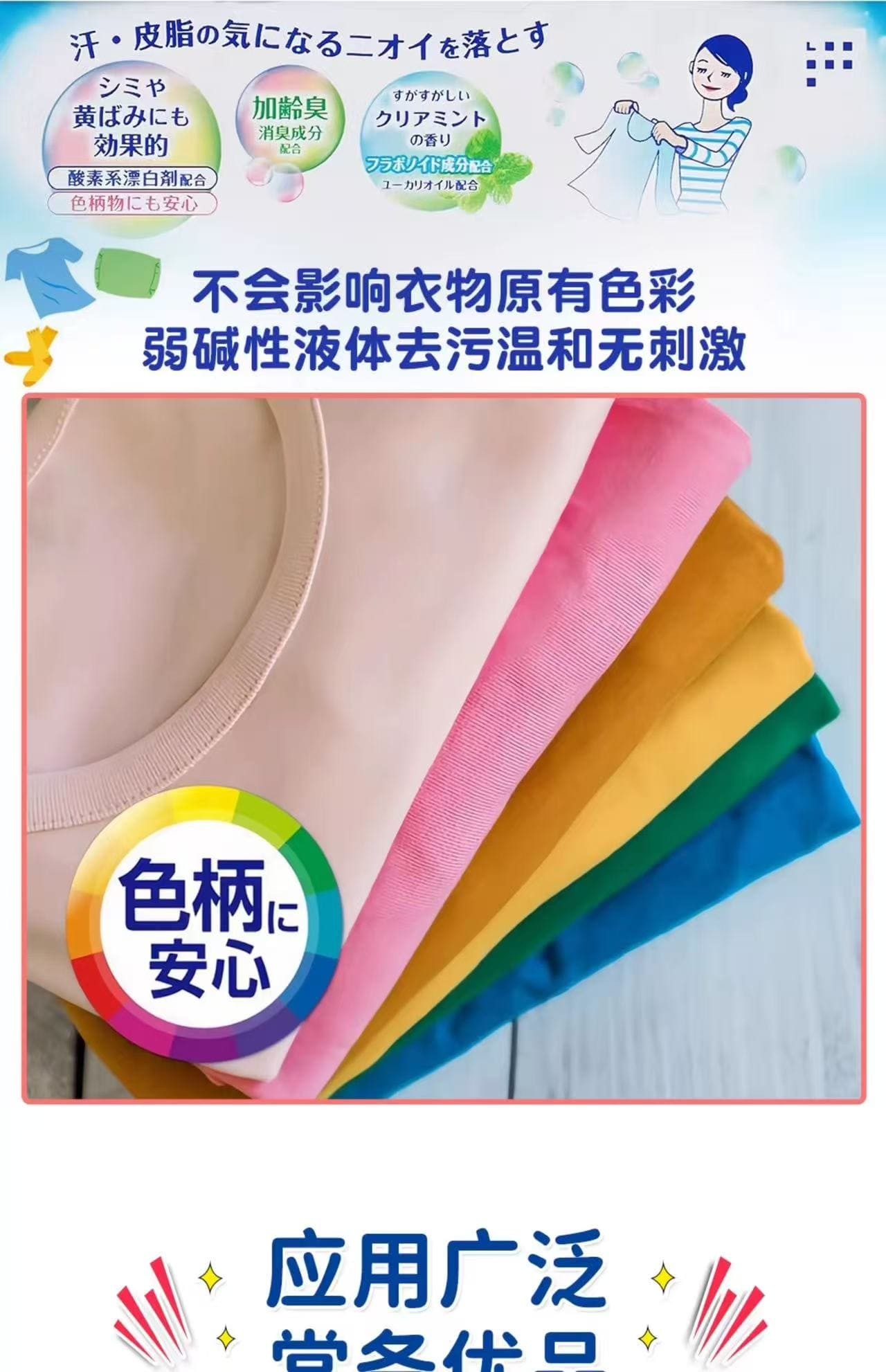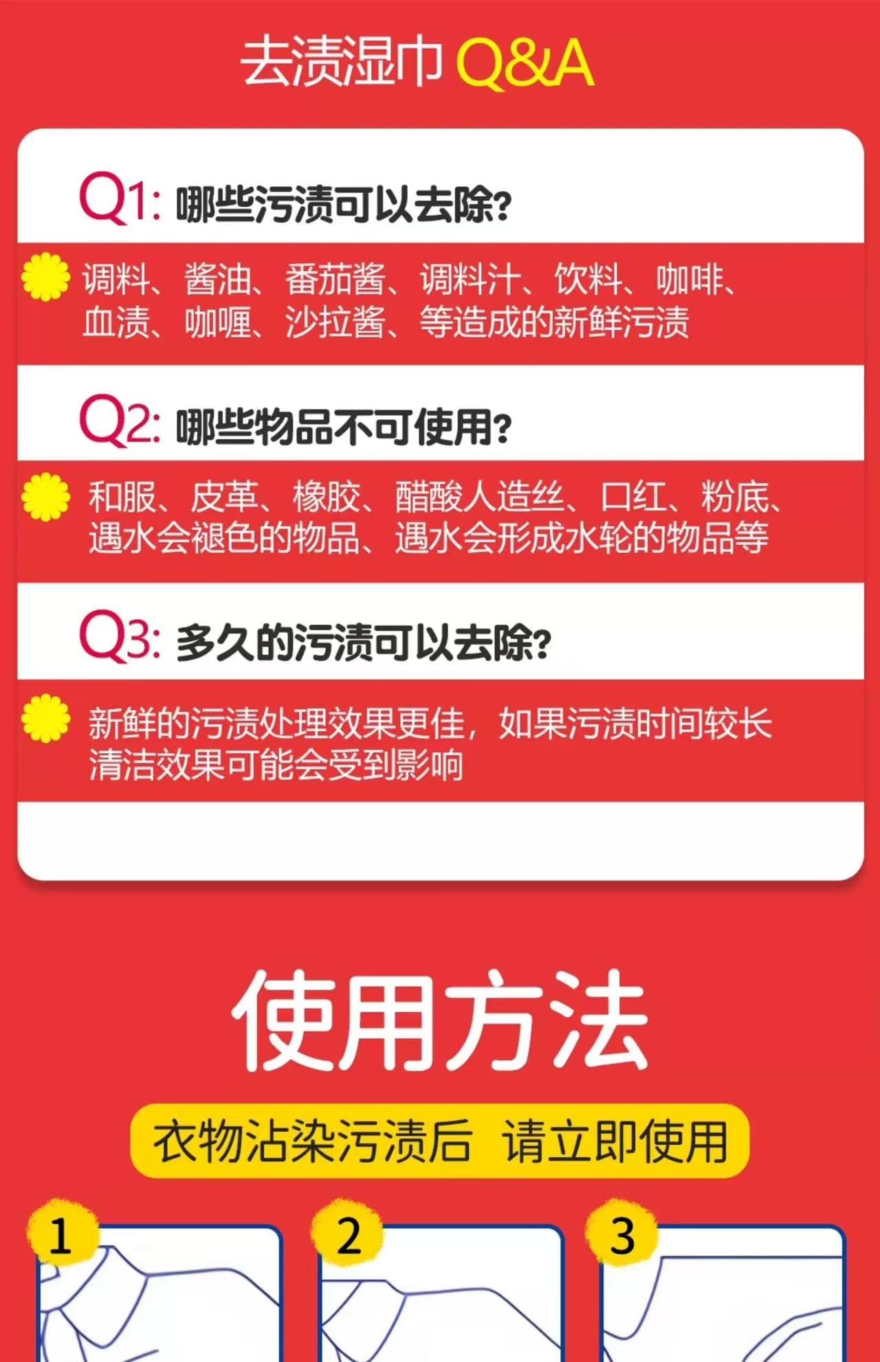 注意:*请在确保衣物不会掉色或者褪色的情况下使用。