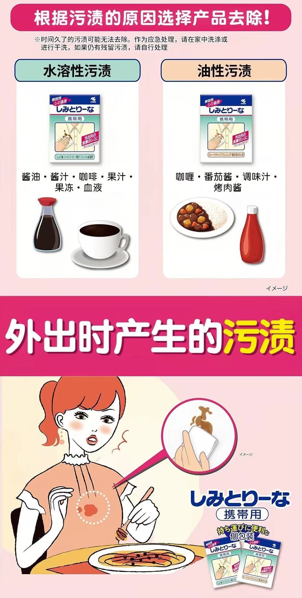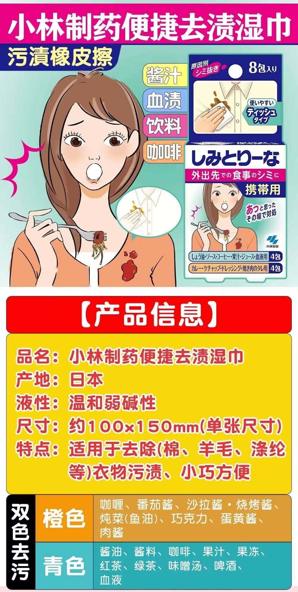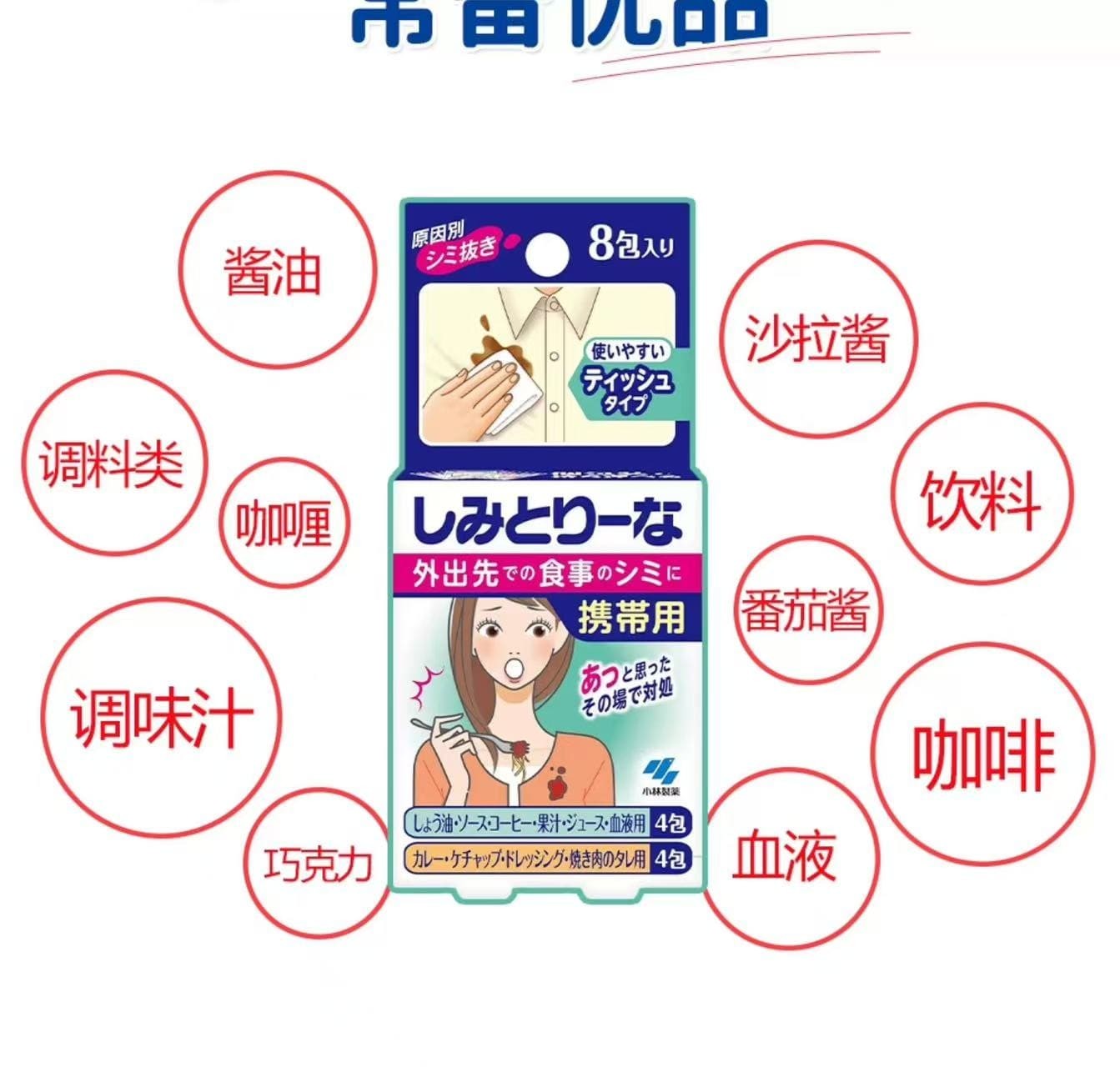 日本KOBAYSHI小林制药便携衣物应急去污清洁湿巾
