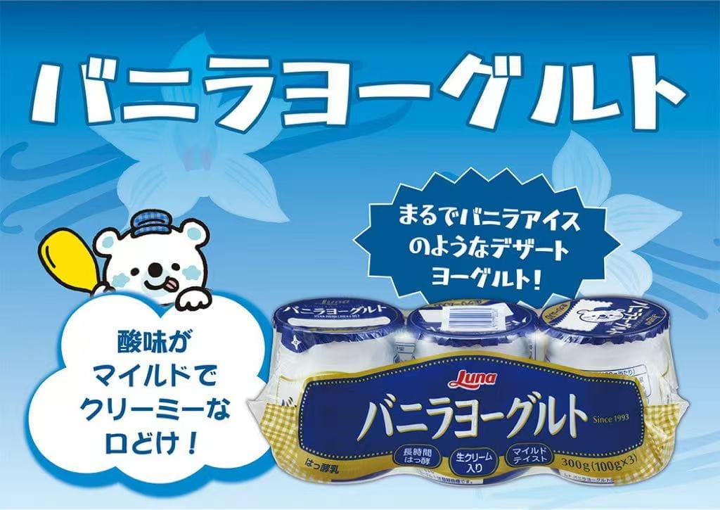 日本露娜的畅销产品-这款香甜顺滑的香草酸奶美味的秘诀在于其醇厚浓郁的口感,而这得益于长时间的发酵过程。自1993年上市以来,这种香草与酸奶的美味组合一直深受广大顾客的喜爱。