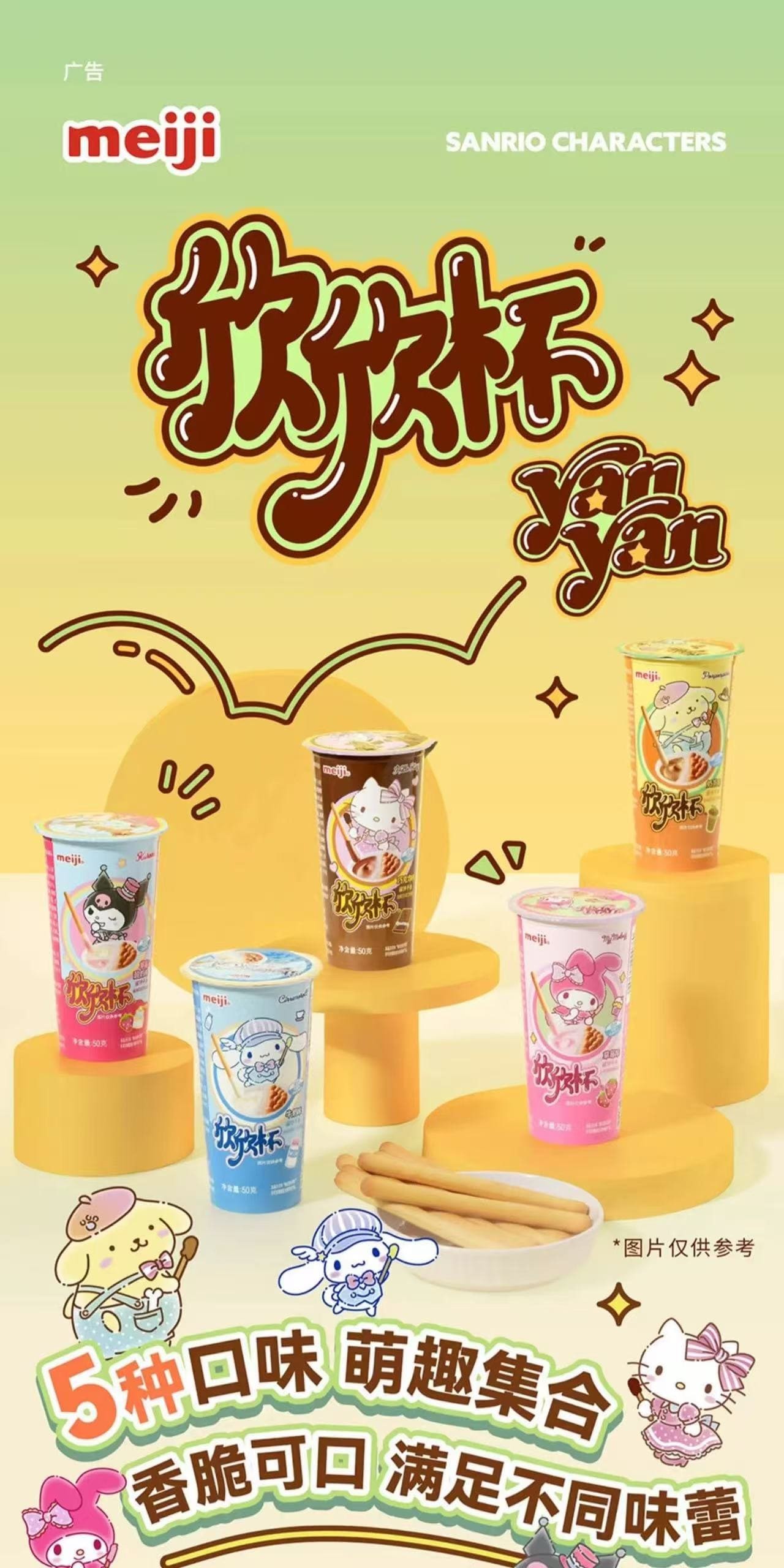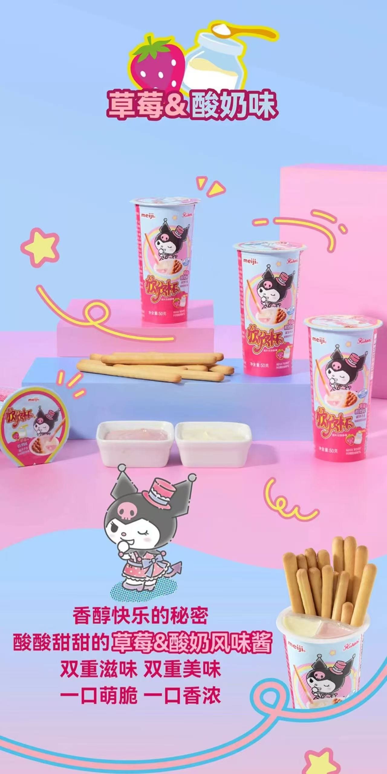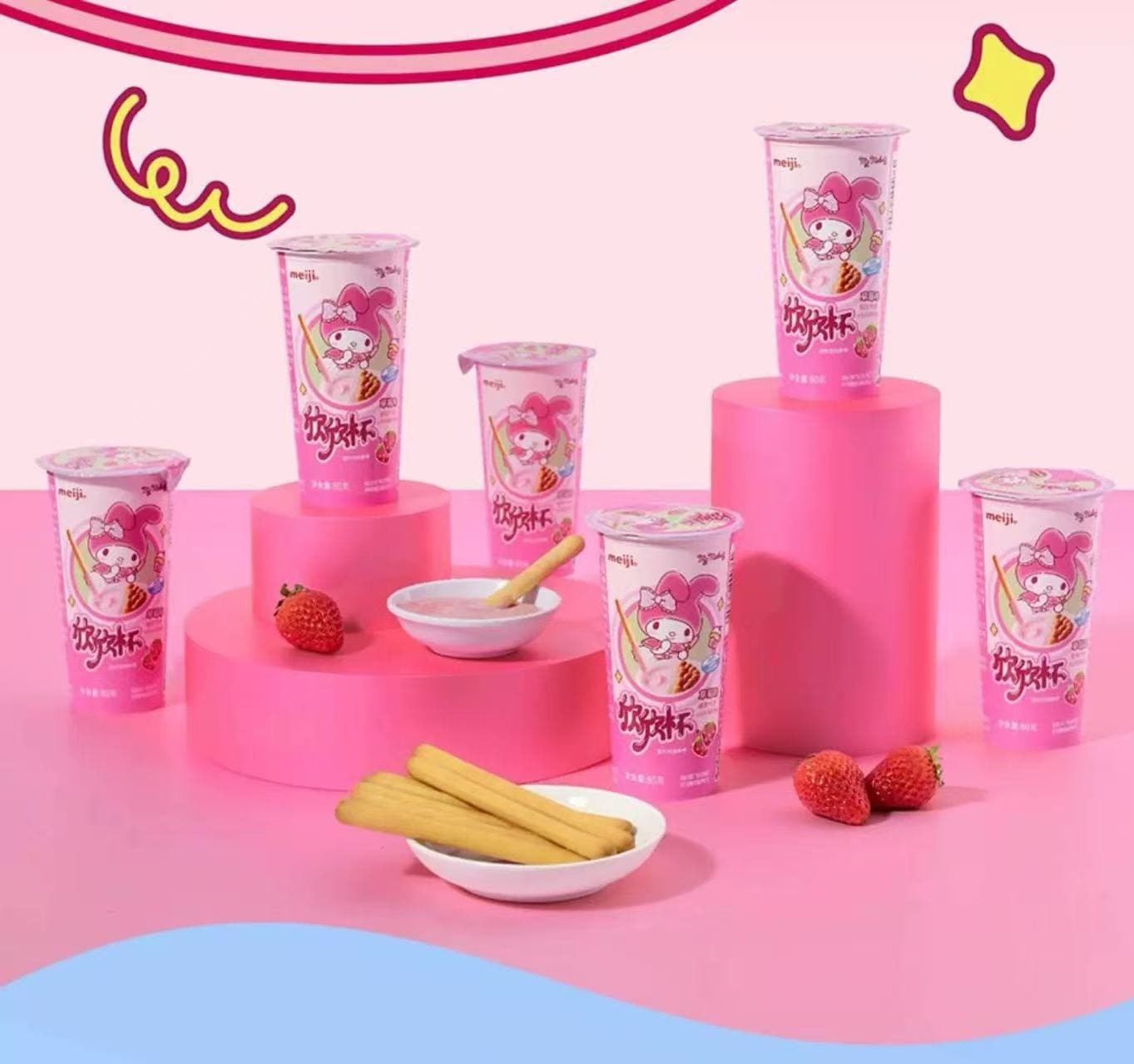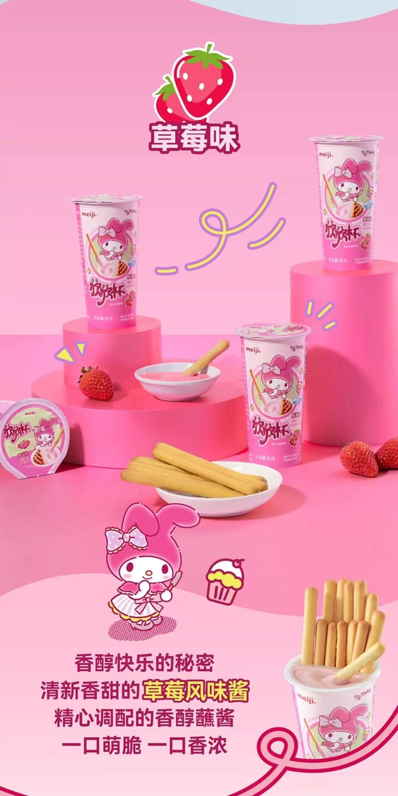 日本Meiji明治欣欣杯X三丽鸥Sanrio联名蘸酱饼干儿童棒棒饼干零食