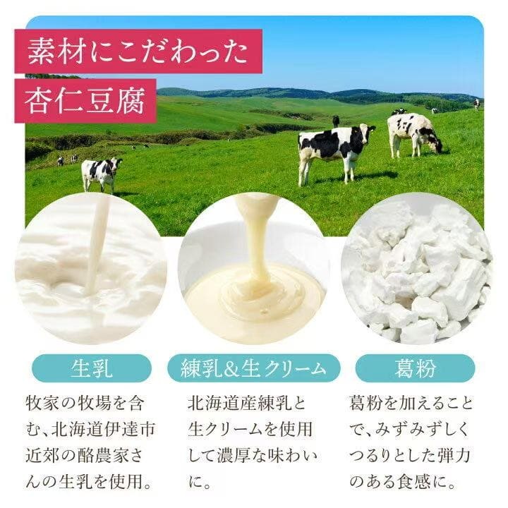这款杏仁豆腐采用北海道伊达市郊外的生牛奶和炼乳双重混合制成,使其具有浓郁的奶香味!