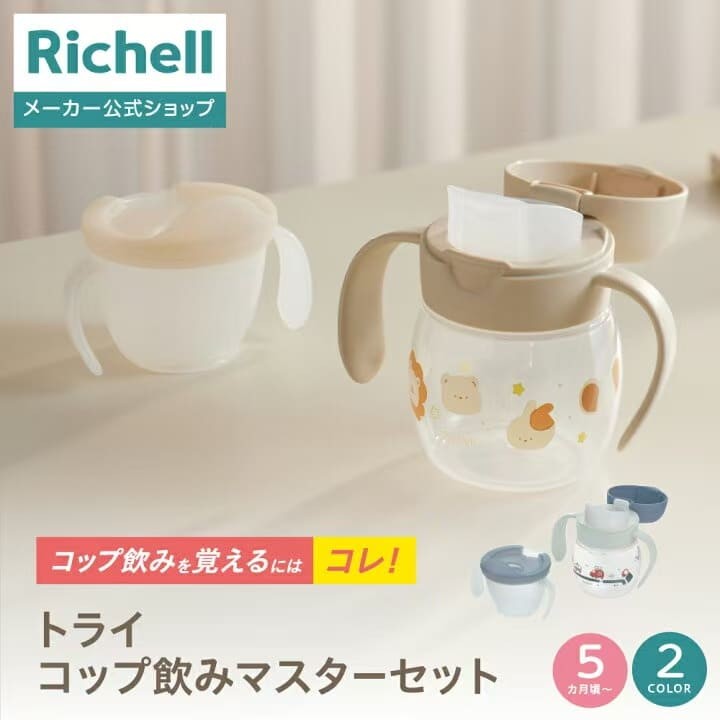 日本Richell利其尔TLI第四代入口式直饮学习水杯套组礼盒套装(5个月+)