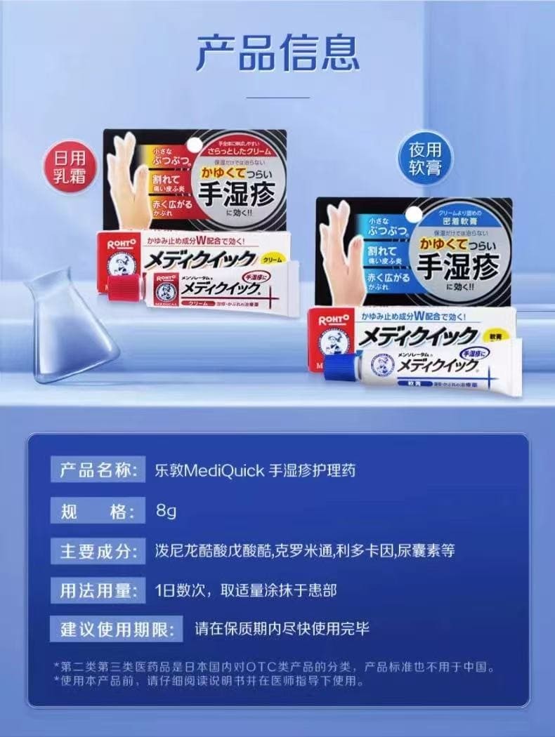 日本ROHTO曼秀雷敦舒解舒解止痒手湿疹膏手部皮炎皮疹消炎止痒膏