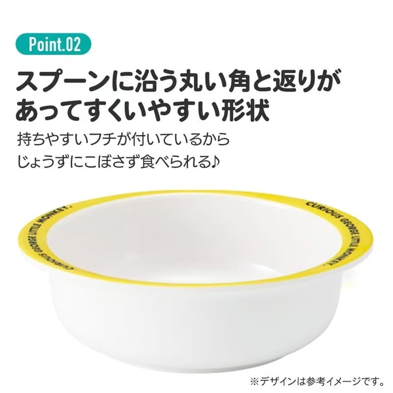 这款轻巧耐用的儿童密胺餐具采用圆角和棱纹边缘设计,方便舀取食物。