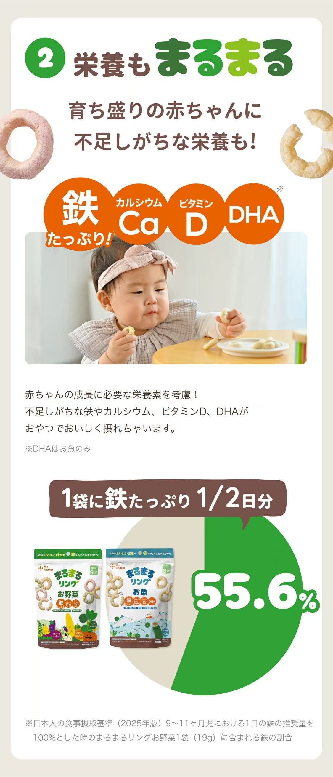 这些环形的米泡芙里含有鱼粉,甚至还有鱼骨。鼓励宝宝自己进食,锻炼宝宝抓握。同时考虑到了宝宝经常缺乏的营养成分!产品并且配有拉链,因此无论在什么场合都可以随时随地享用。