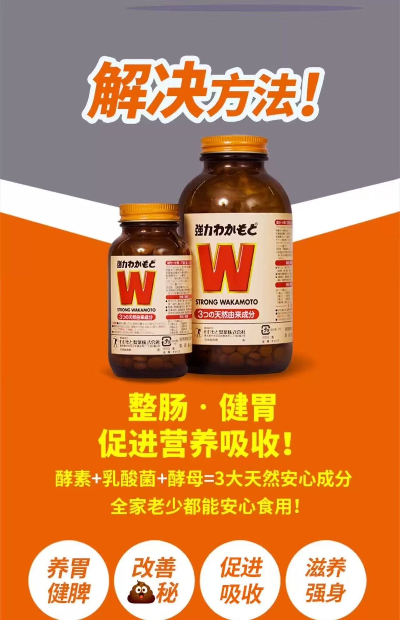 日本WAKAMOTO益生菌无添加健胃软便调理肠胃乳酸菌酵素丸