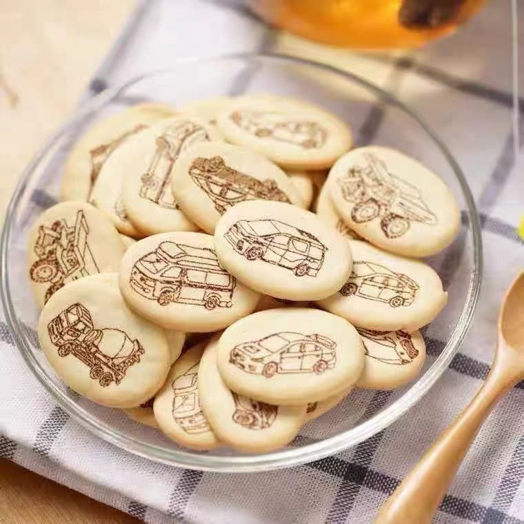 每块饼干上都有各类汽车图案,非常可爱,而且后面的纸壳撕下之后可以折成很漂亮的汽车模型,有6款汽车图案模型哦,好吃又好玩,给小宝宝增加下动手的能力哦,您的宝宝一定喜欢。