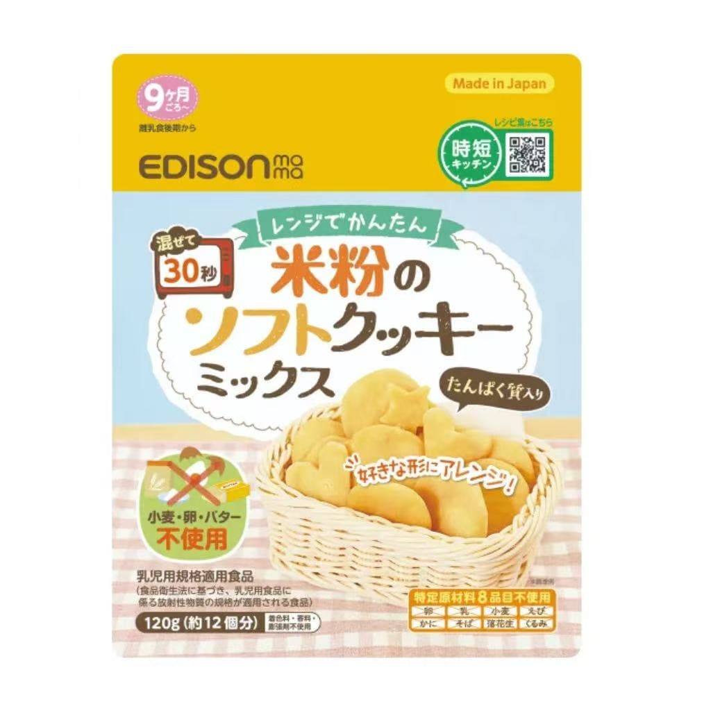 临期日本Edison Mama易于微波炉加热无麸质米粉软饼干混合粉软饼干快捷制作粉(9个月+)