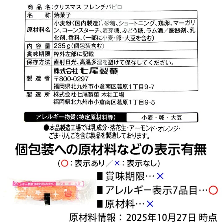 日本七尾制果圣诞限定奶油夹心蛋卷