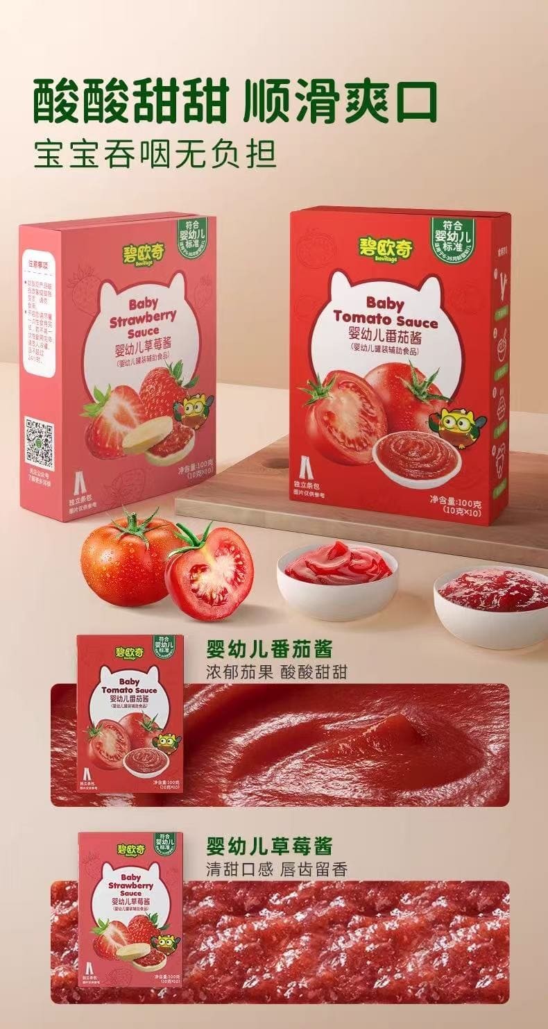 碧欧奇Biojunior有机婴幼儿番茄酱草莓酱面包吐司涂抹酱
