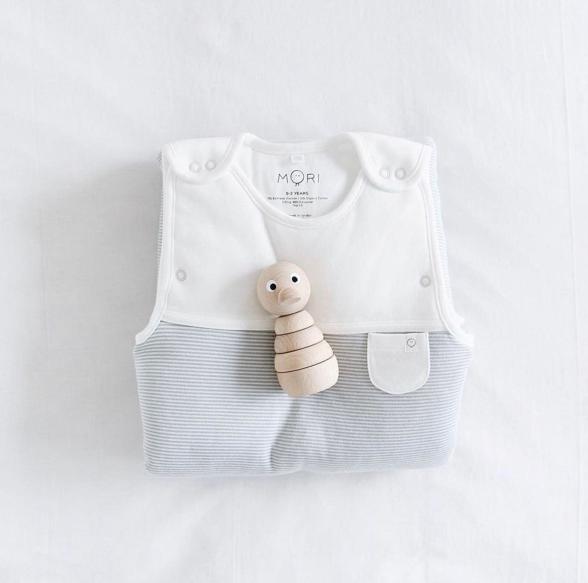 MORI Clever 睡袋 Tog 2.5 灰色条纹确保您的小宝贝拥有很大的成长自由 - 因为这款睡袋可使用 4 公斤(8-9 磅)至 2 岁。