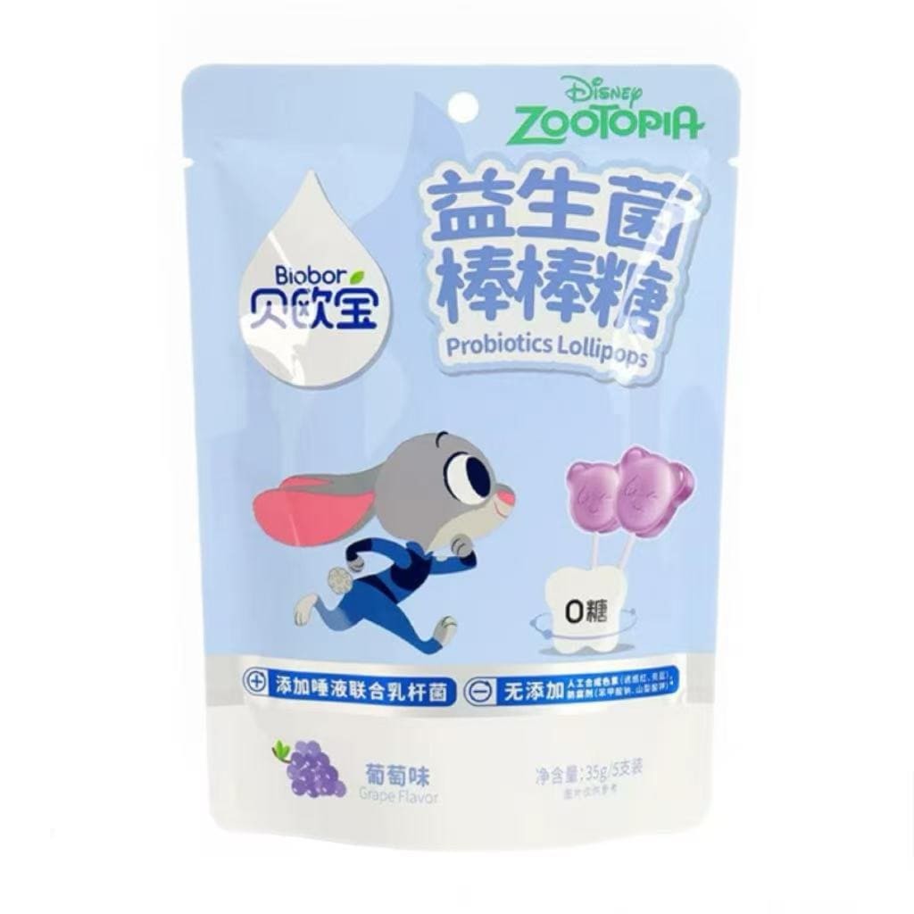 贝欧x疯狂动物城联名益生菌棒棒糖0糖儿童棒棒糖