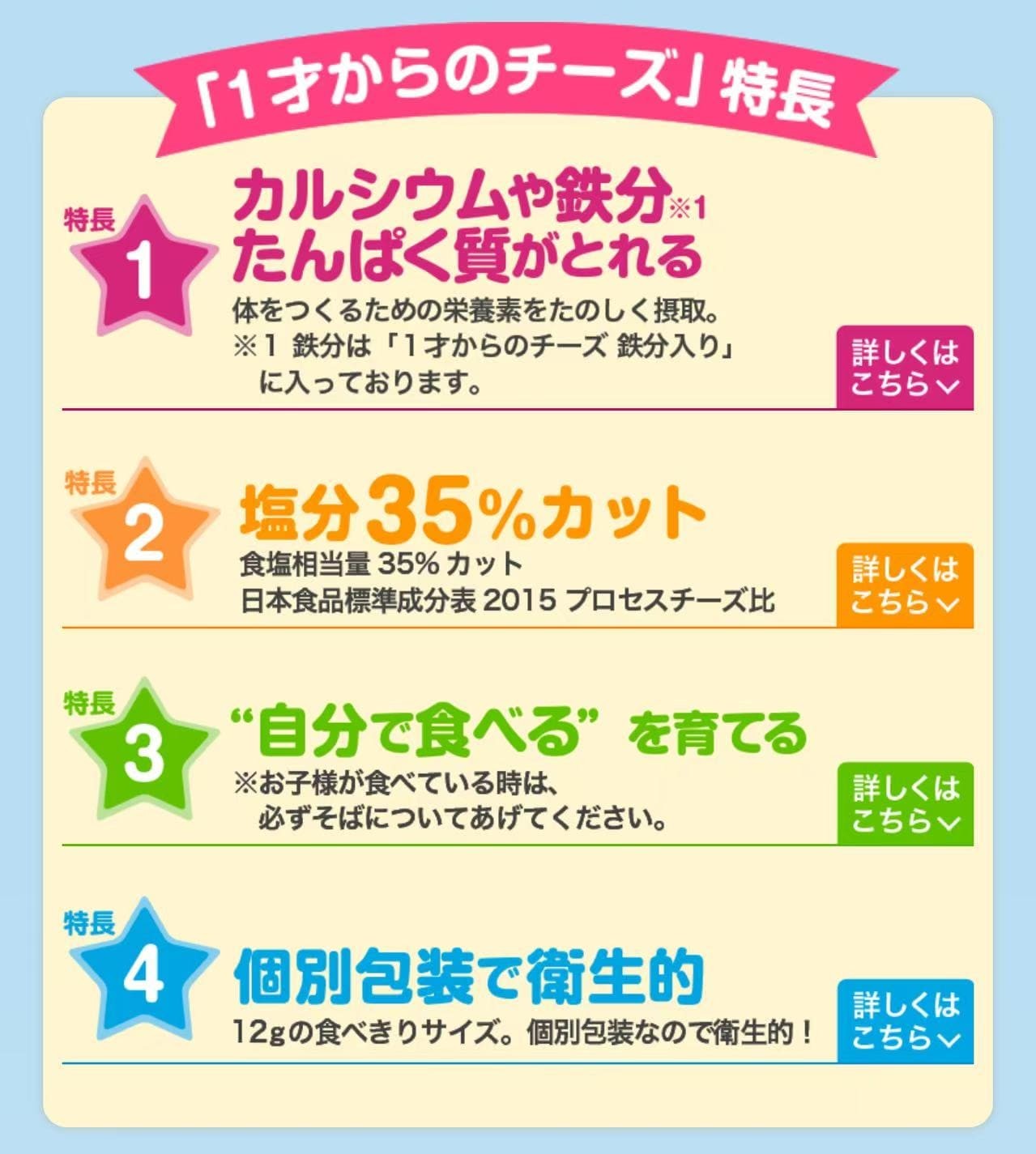 这款奶酪富含铁,是快速生长的婴儿必需的营养素,质地柔软,盐分含量降低35%,即使在宝宝长牙之前也适合食用。