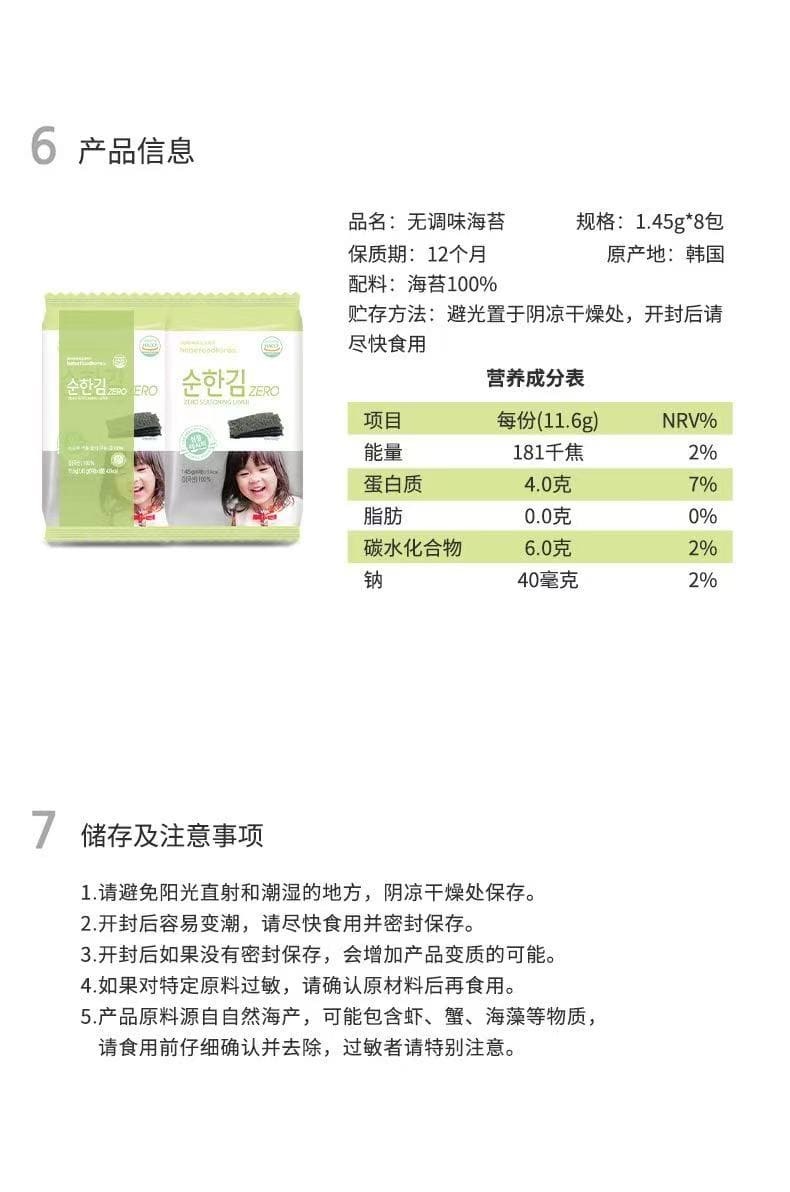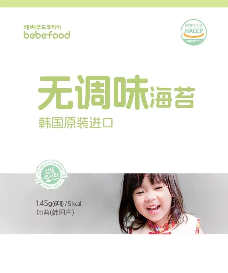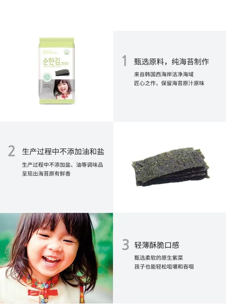 韩国bebefood宝宝福德无调味海苔儿童即食海苔片