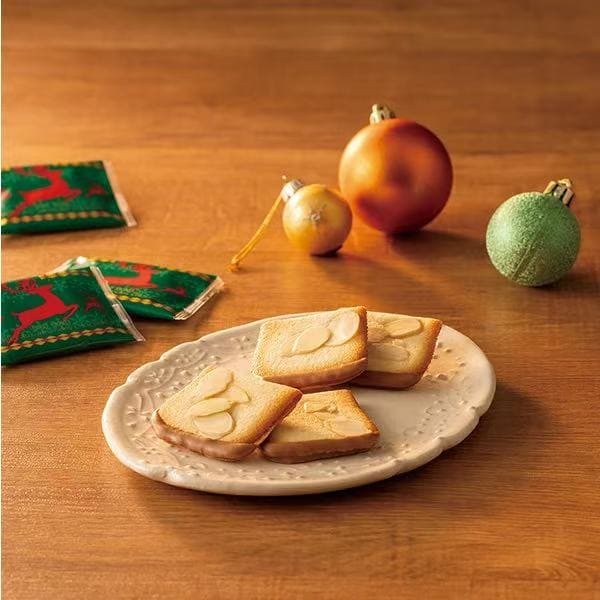一款用杏仁片面团制成,烘焙后对折,一面裹上牛奶巧克力的饼干。