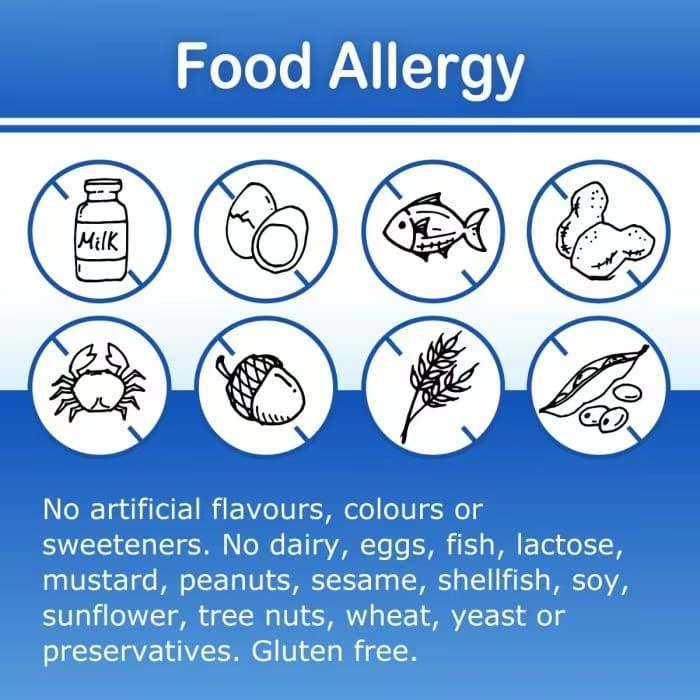 过敏源:不含乳制品、鸡蛋、鱼类、乳糖、芥末、花生、芝麻、贝类、大豆、葵花籽、树坚果、小麦、酵母或防腐剂。不含麸质!