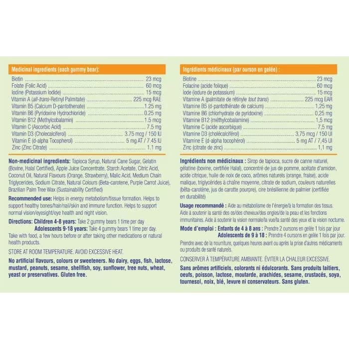 - 儿童每日必需配方。富含11种必需营养素,帮助填补孩子饮食中的营养缺口。维生素A有助于维持良好的视力,维生素B族提供日常能量,维生素C增强免疫力,维生素D3强健骨骼和牙齿,矿物质锌有助于增强免疫力和食欲。