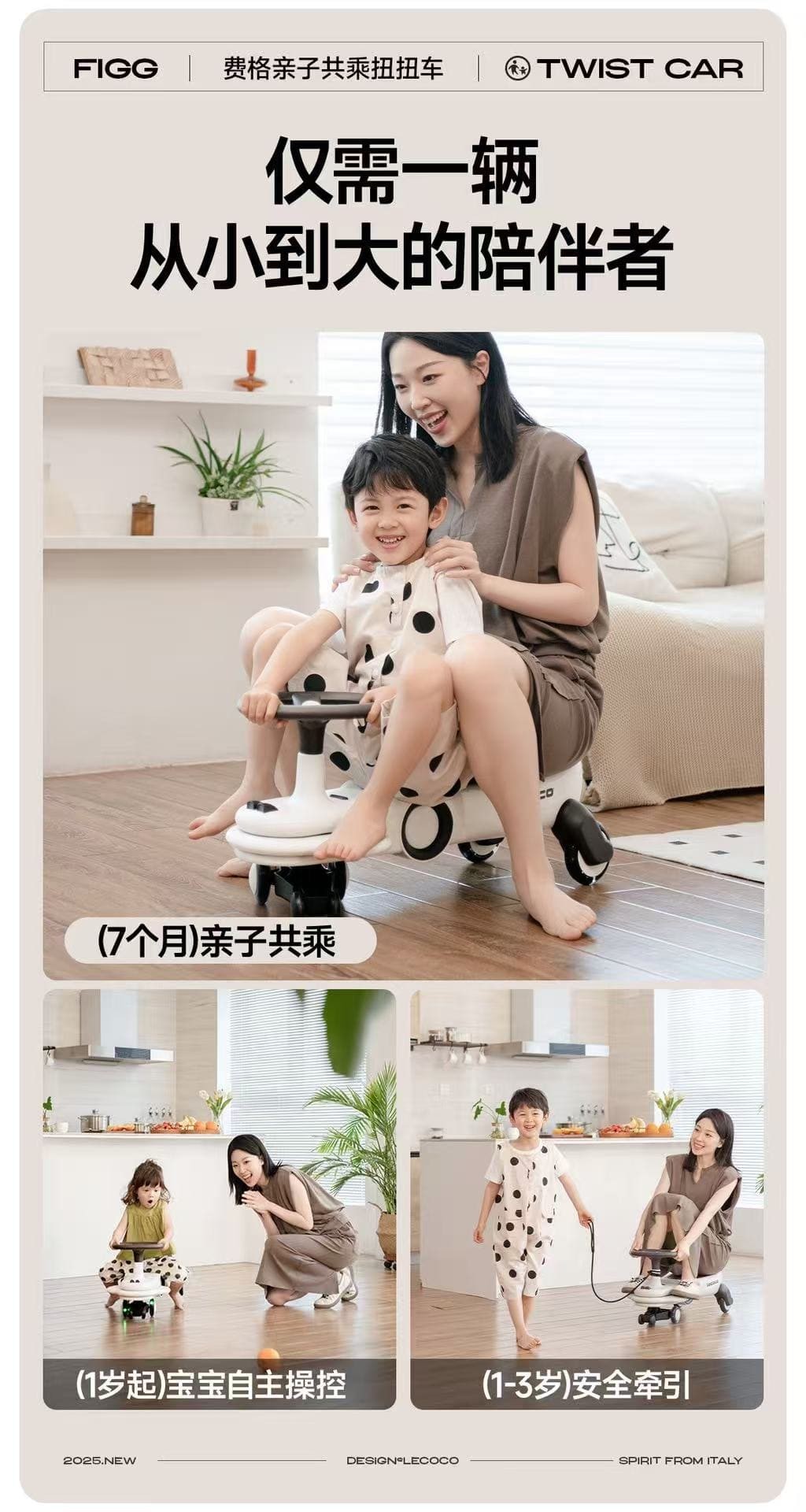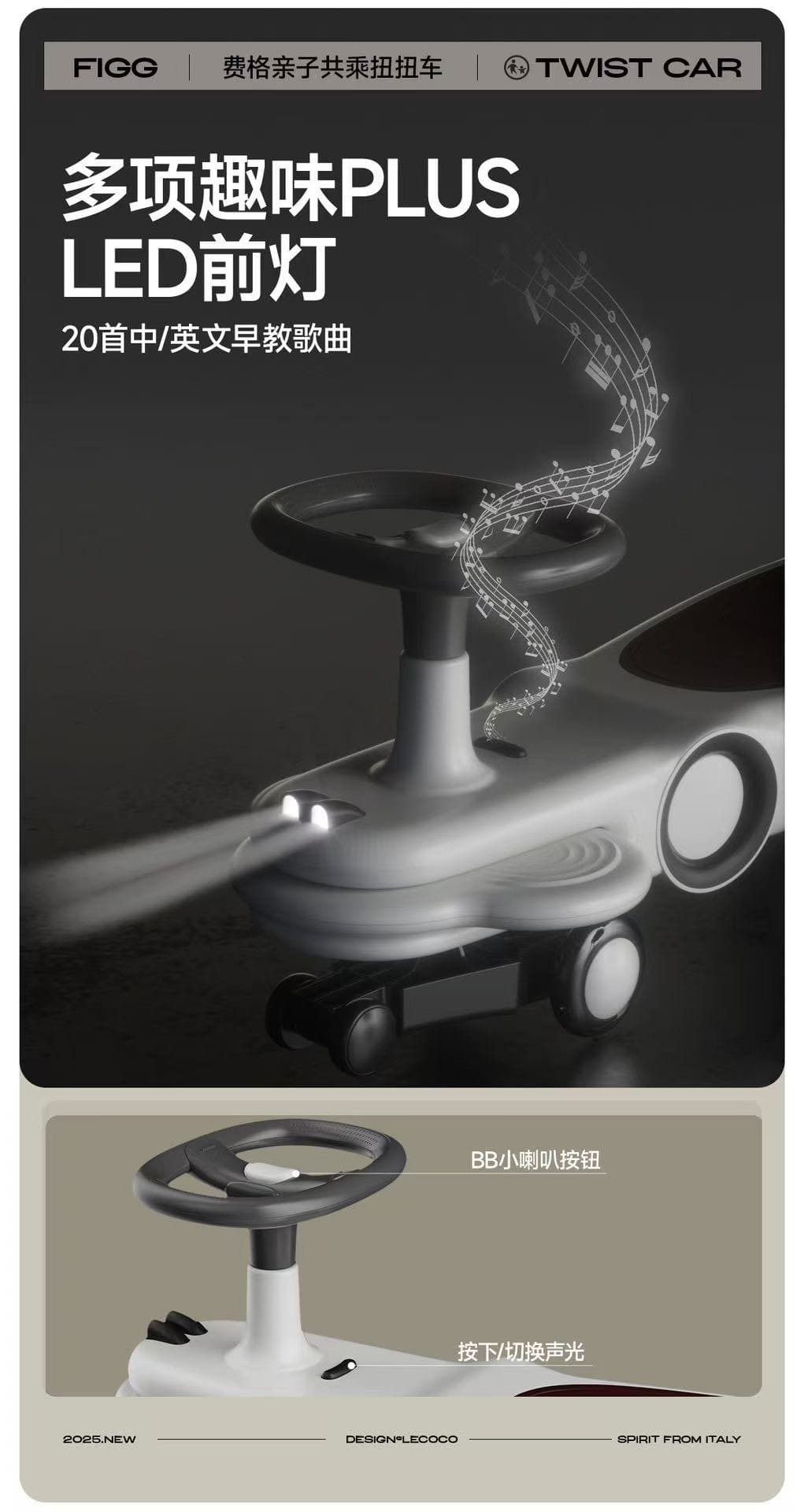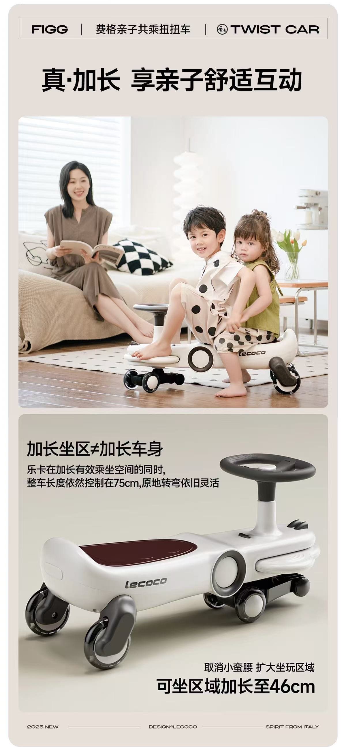 Lecoco乐卡扭扭车儿童男女静音宝宝玩具2-8岁万向轮防侧翻溜溜车